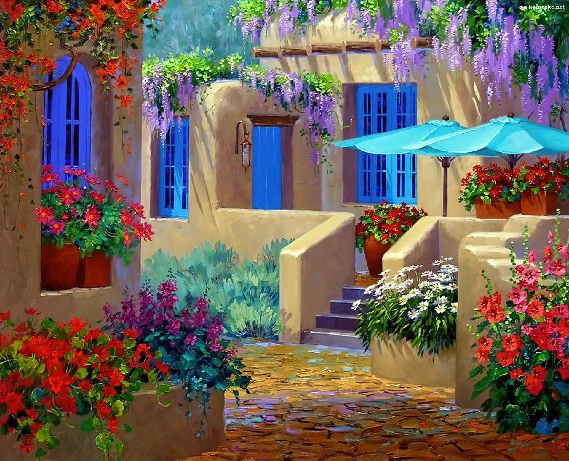 Fasady, Kwiaty, Budynków, Kolorowe na Komórkę