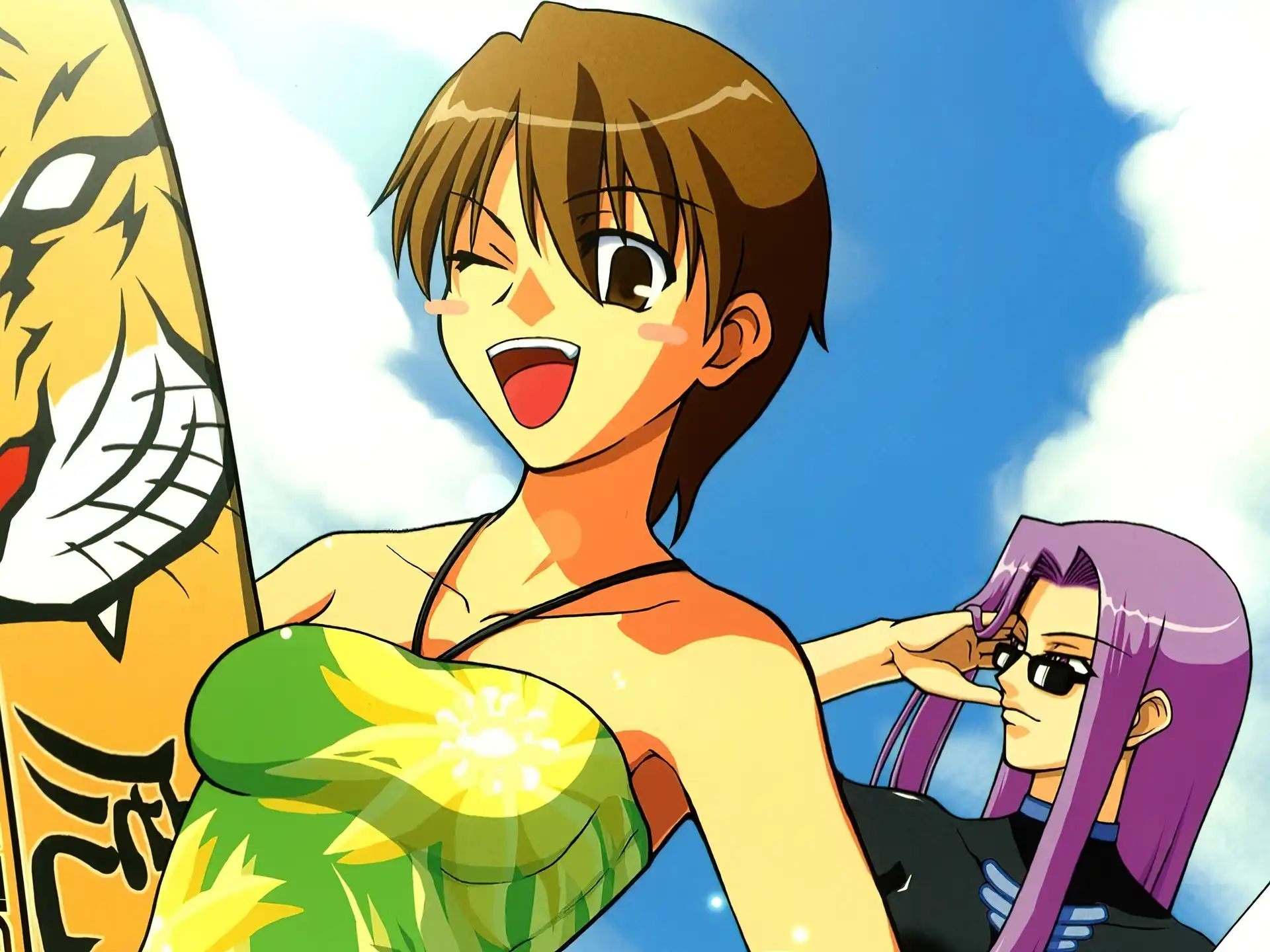 deska, Fate Stay Night, dziewczyny, plaża, surfing na Komórkę