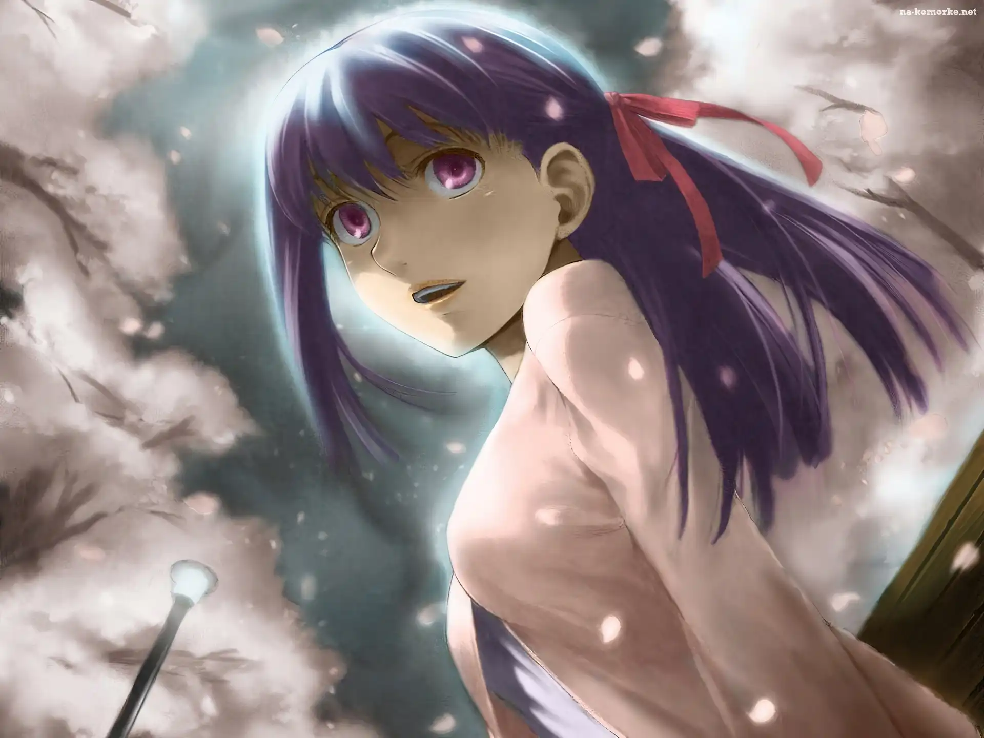 Fate Stay Night, park, dziewczyna na Komórkę