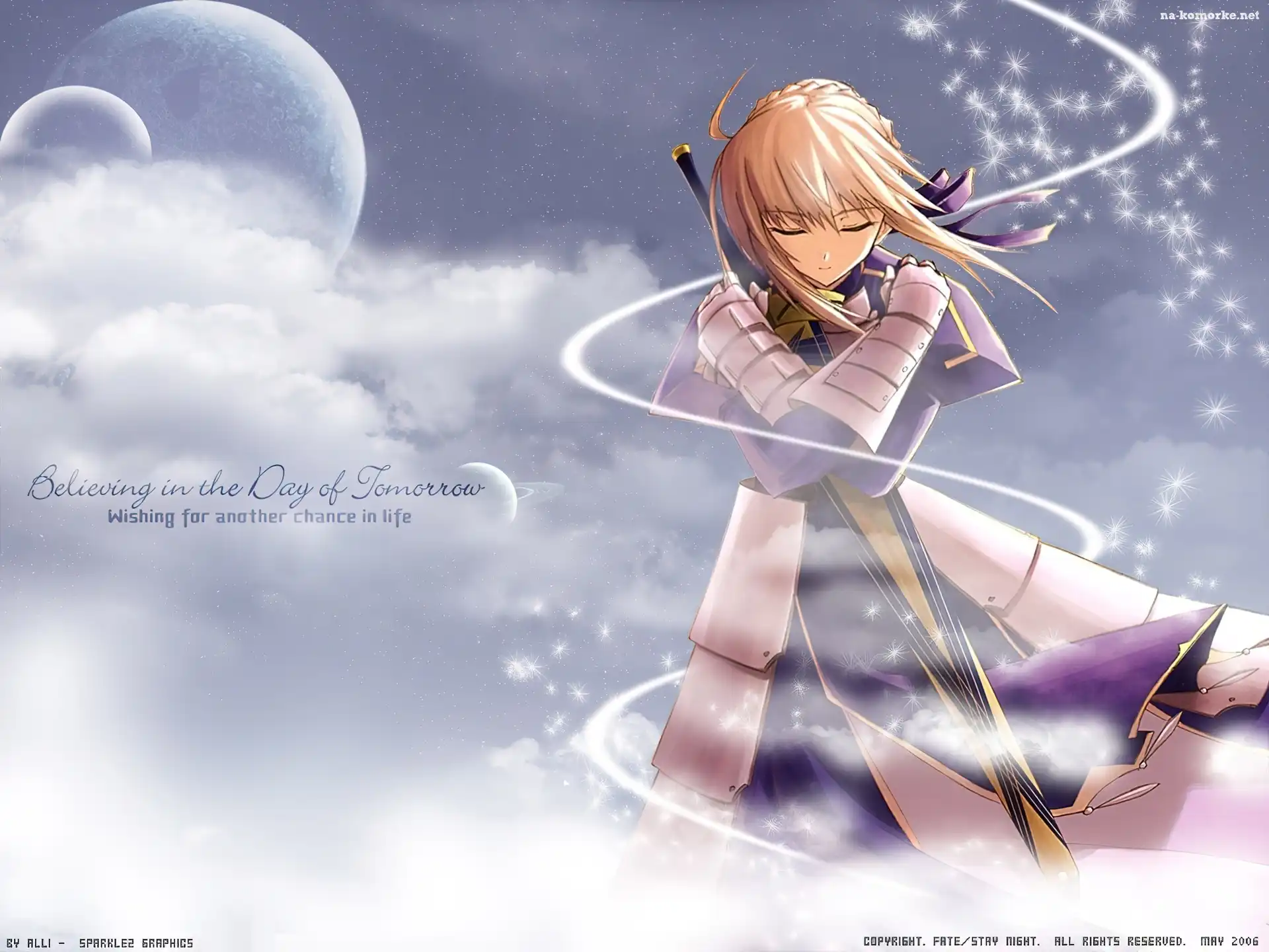 Fate Stay Night, zbroja, dziewczyna, księżyc na Komórkę
