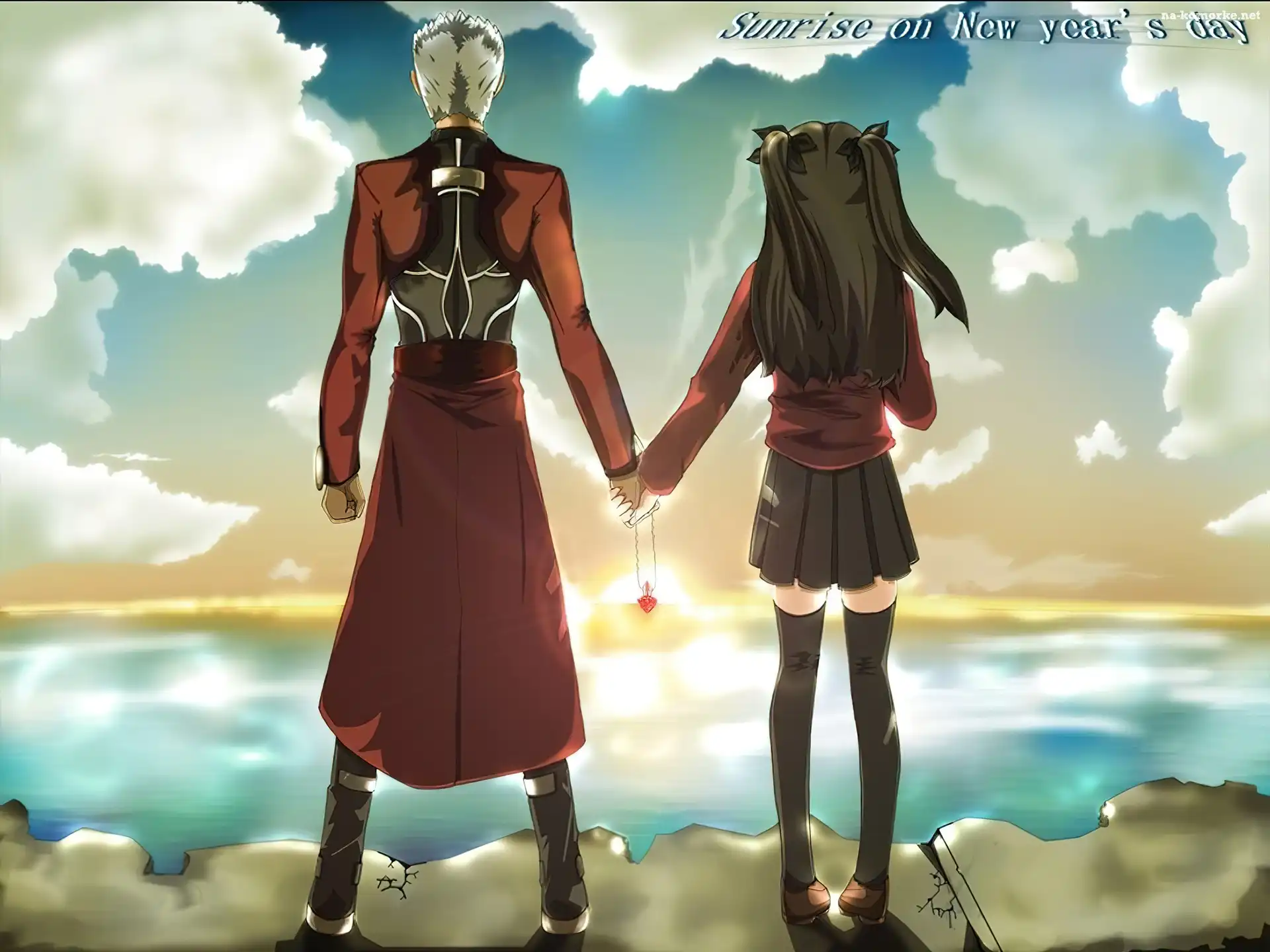 Fate Stay Night, para, klif, ludzie na Komórkę
