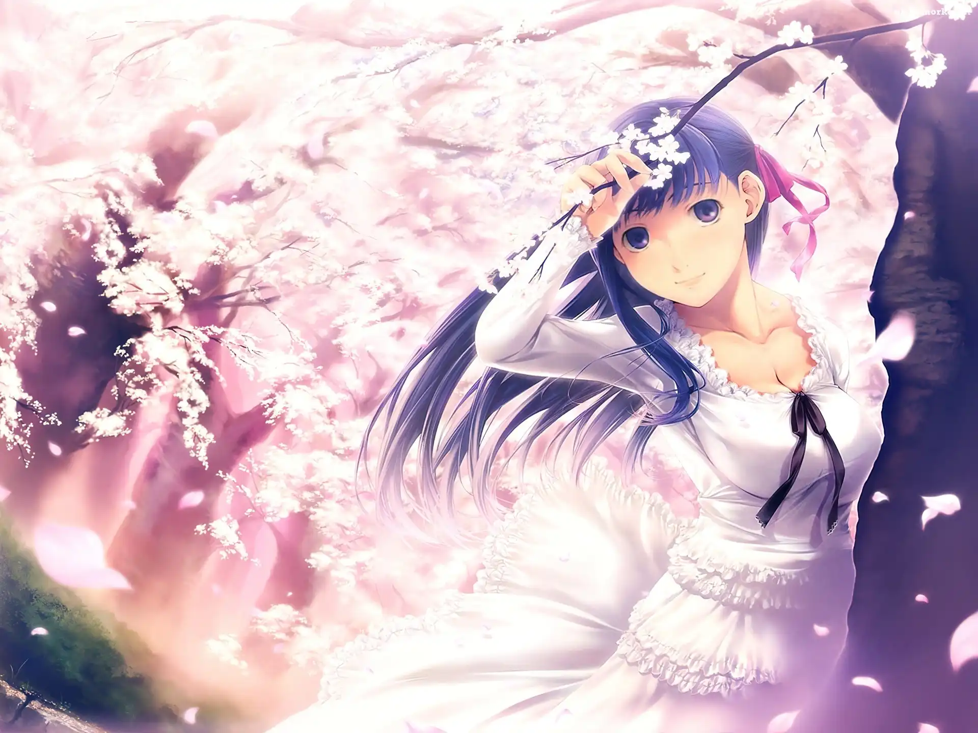 Fate Stay Night, kobieta, drzewo na Komórkę