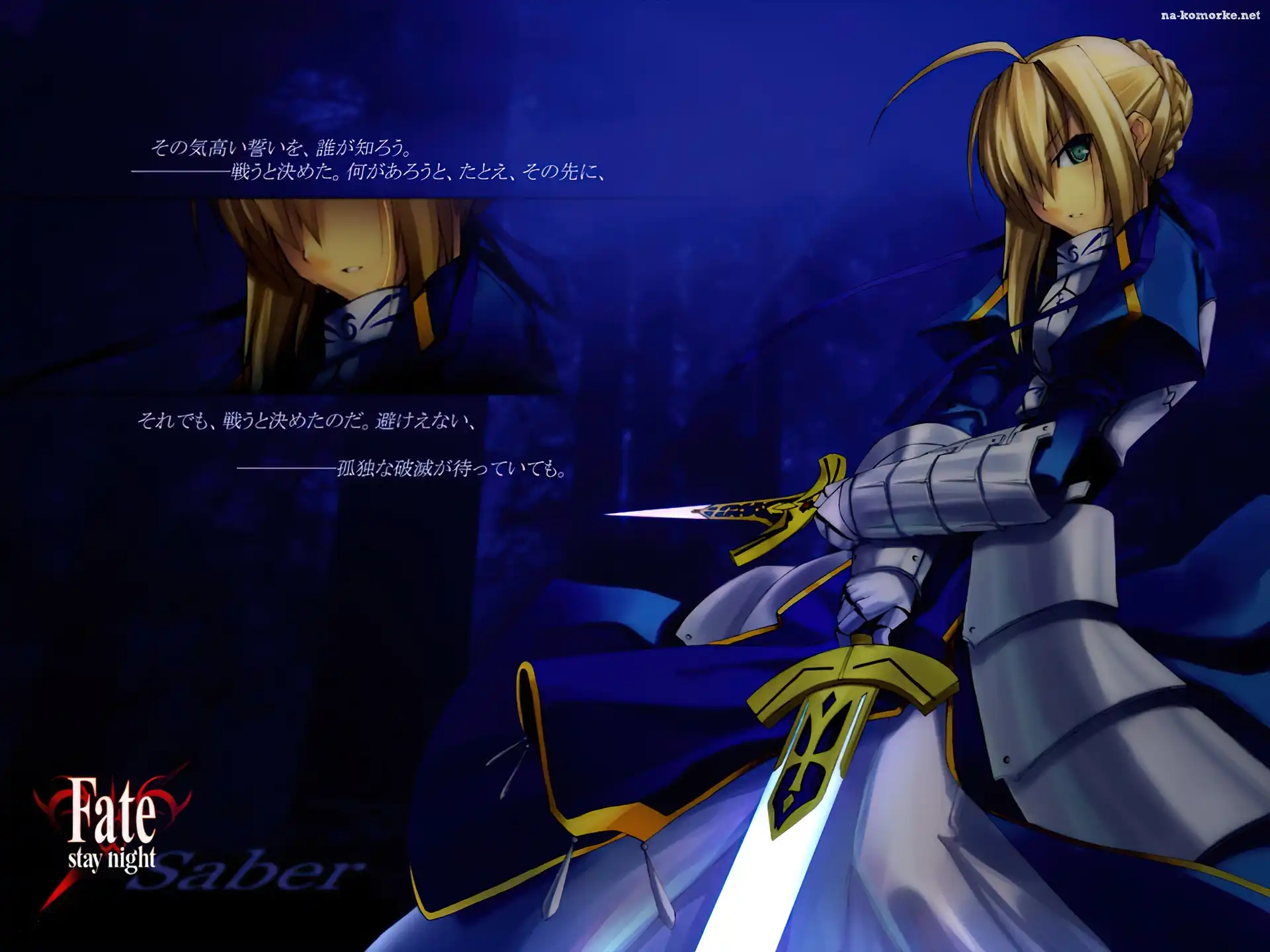 Fate Stay Night, miecz, napis, kobieta, logo na Komórkę