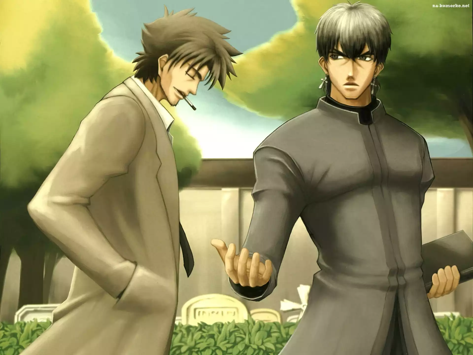 Fate Stay Night, mężczyźni, park na Komórkę