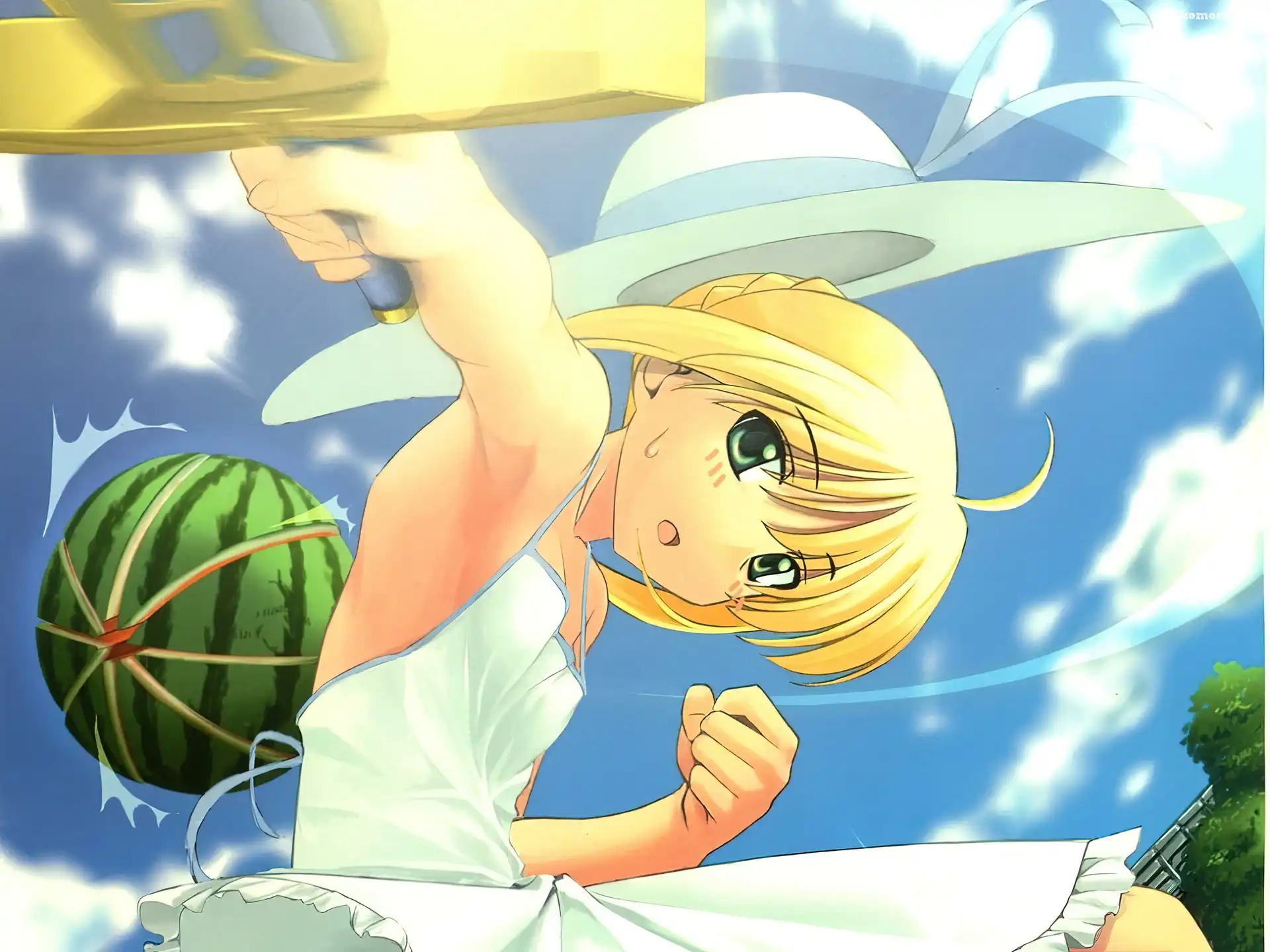 miecz, Fate Stay Night, arbuz, dziewczyna, kapelusz na Komórkę