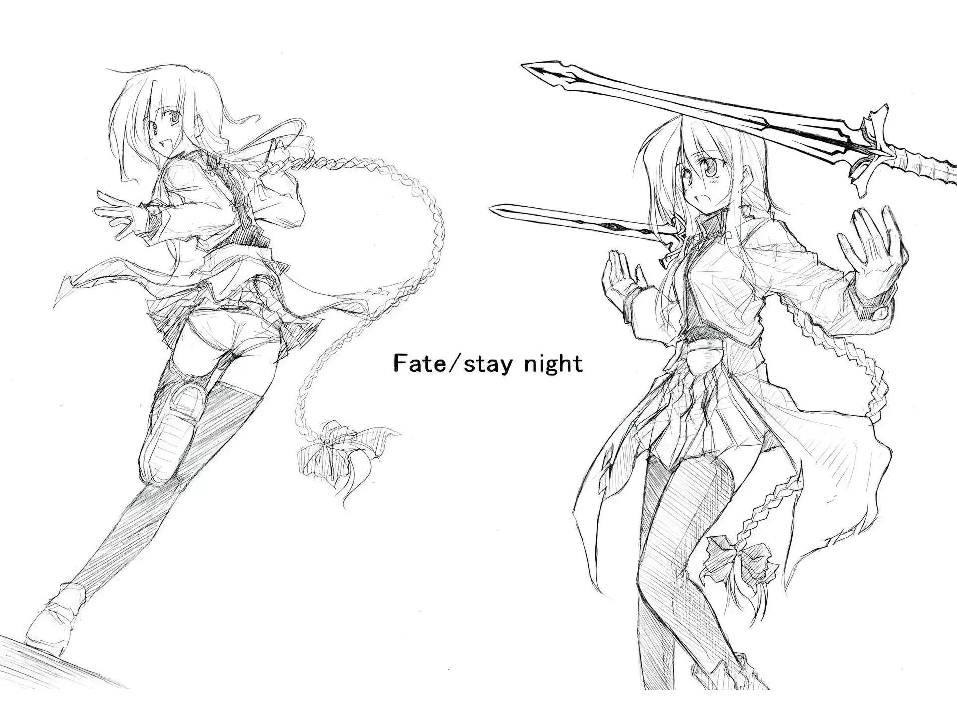 miecze, Fate Stay Night, szkic, ołówek, kobiety na Komórkę