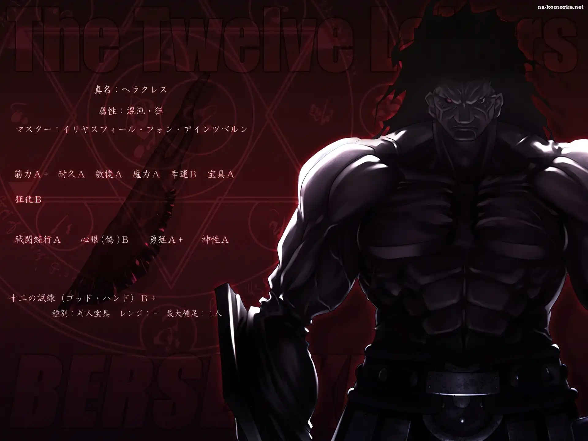 napisy, Fate Stay Night, muskularny, postać, broń na Komórkę