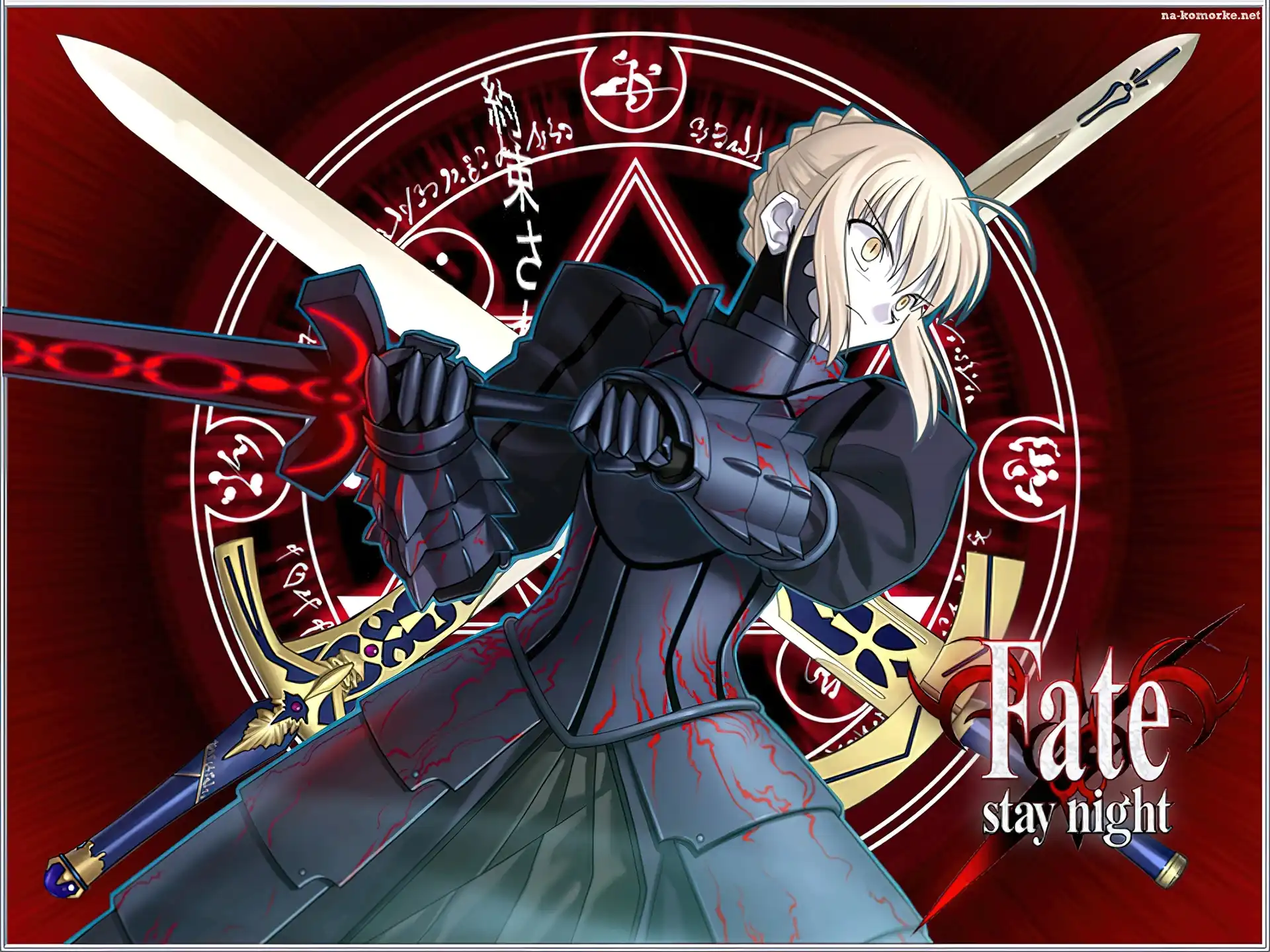 Fate Stay Night, miecze, symbol, kobieta na Komórkę