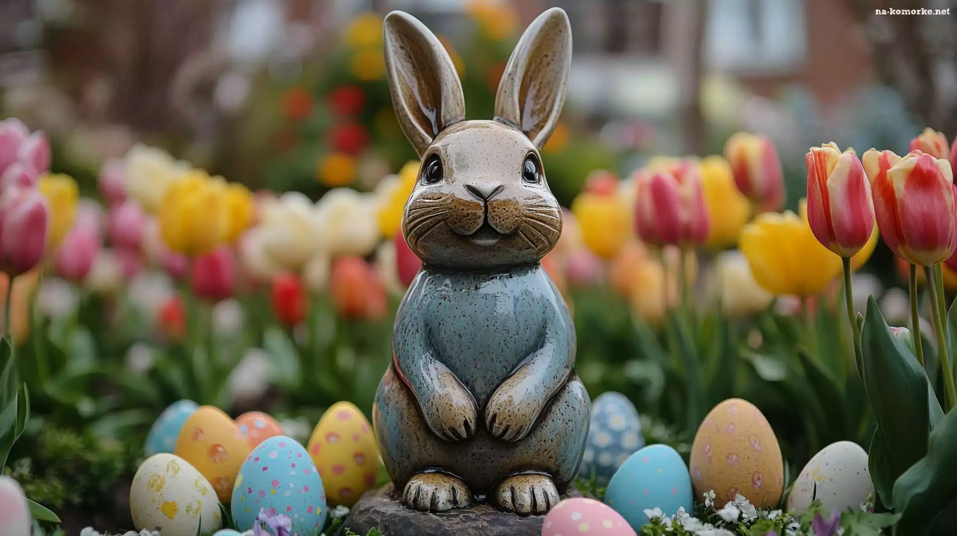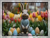 Wielkanoc, Figurka, Pisanki, Zając, Tulipany na Komórkę