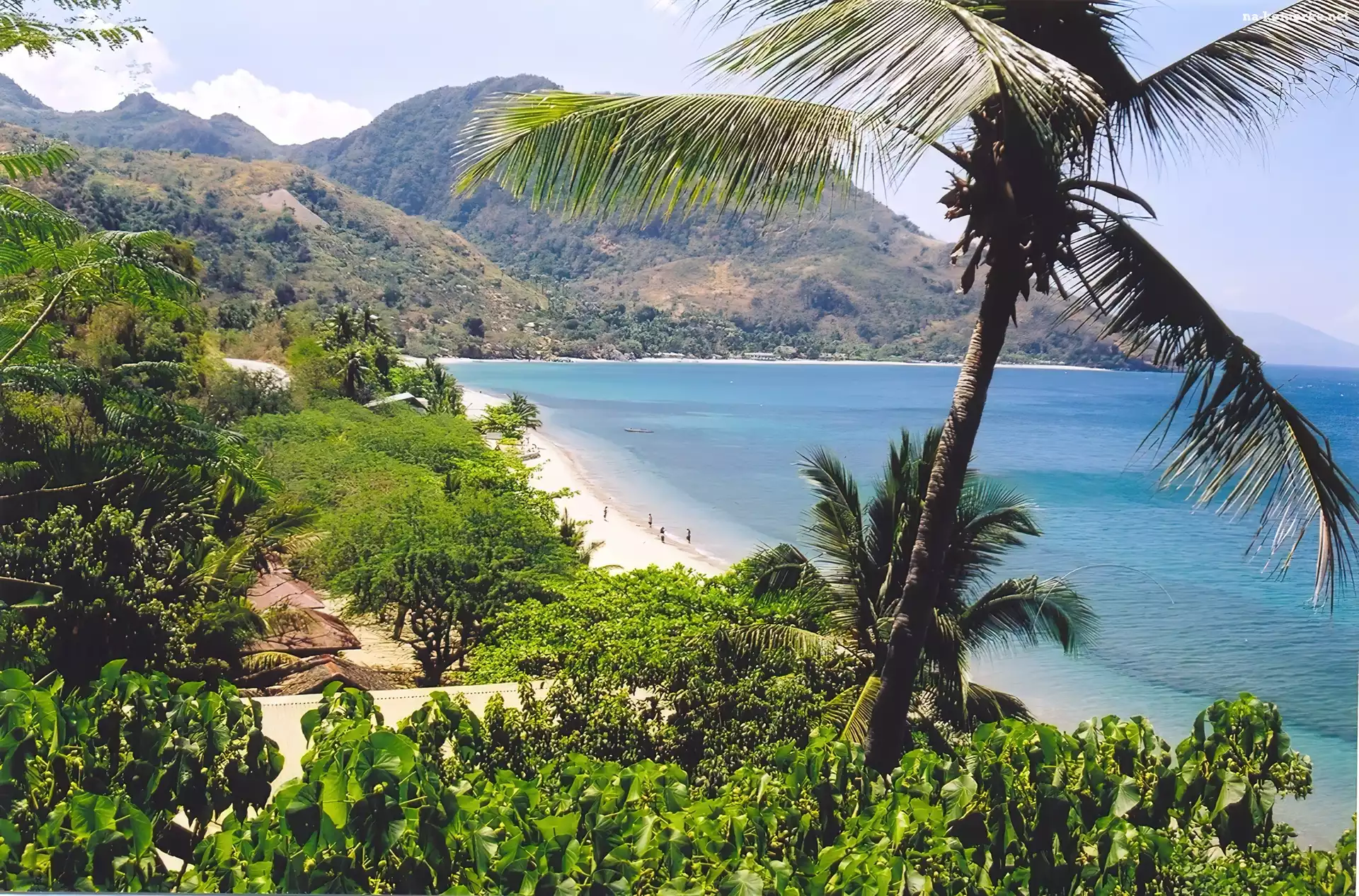 Filipiny, Plaża, Palmy, Morze, Góry na Komórkę