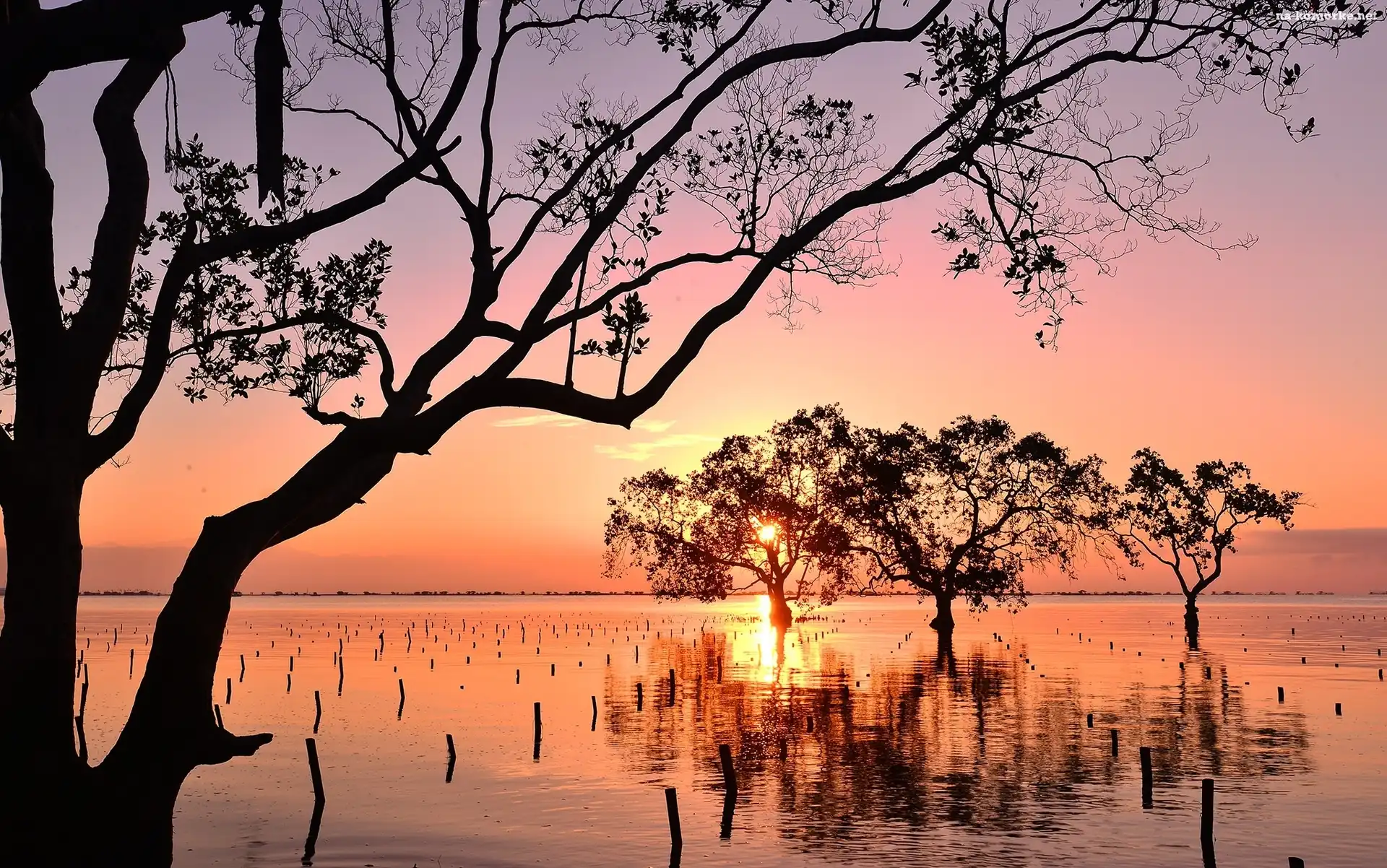 Filipiny, Zachód słońca, Drzewa na Komórkę