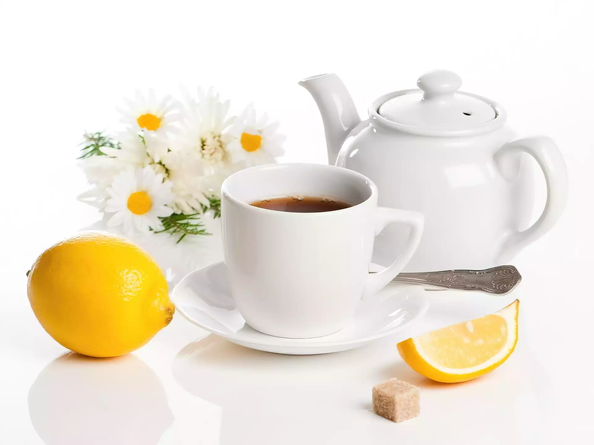 Filiżanka, Herbatka, Margerytki, Cytryna, Dzbanuszek na Komórkę