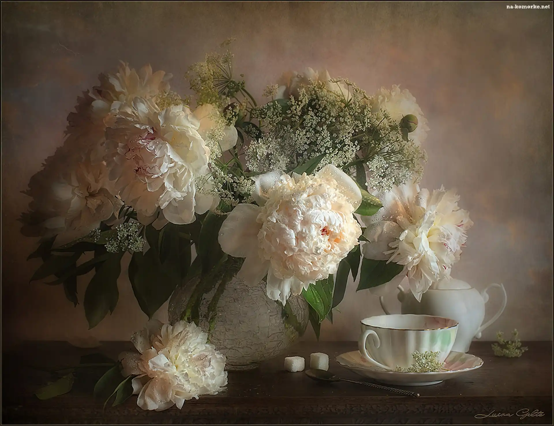 Piwonie, Filiżanka, Imbryk na Komórkę