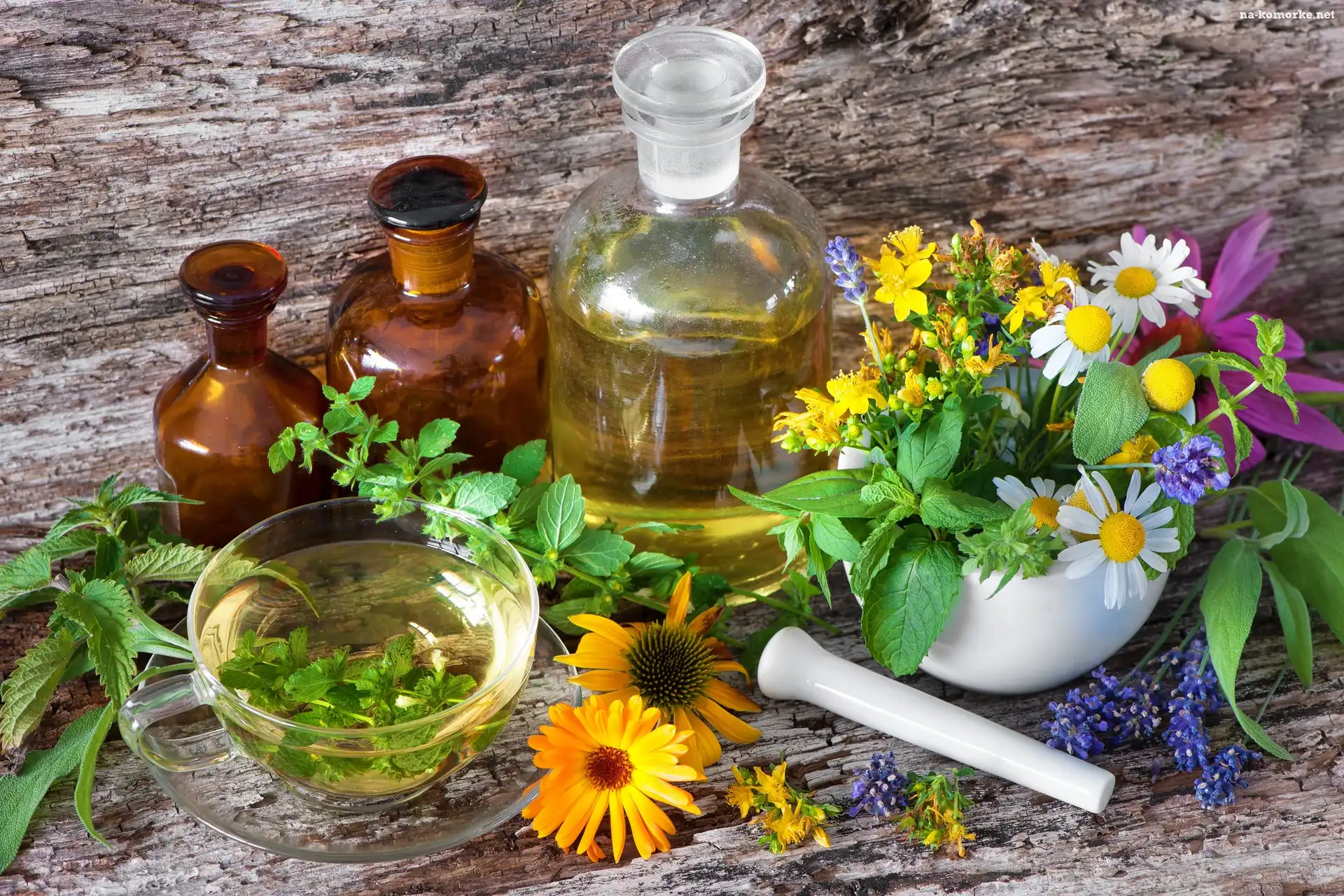 Rośliny, Filiżanka, Kompozycja, Kwiaty, Zioła, Olejki, Buteleczki na Komórkę