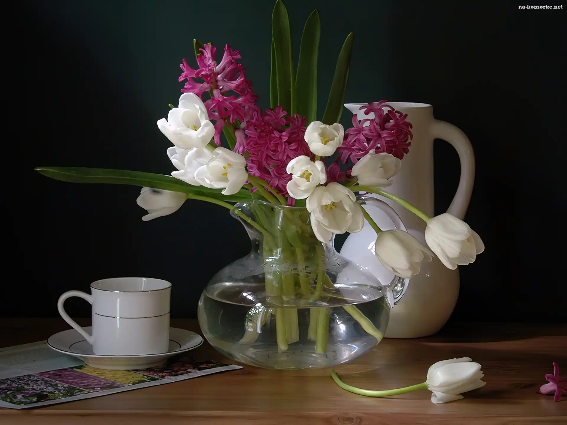 Filiżanka, Kwiaty, Białe, Tulipany, Dzbanek na Komórkę