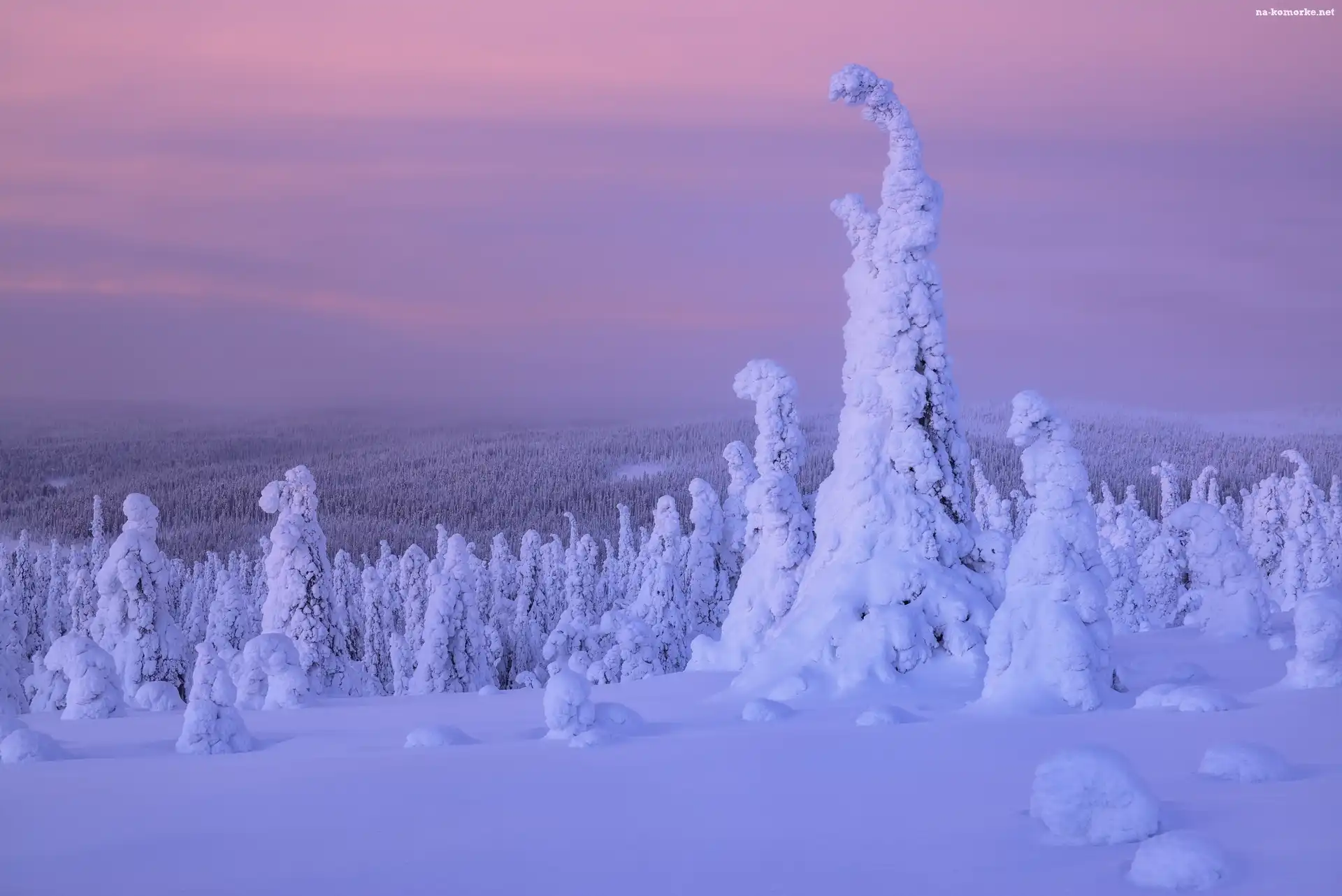 Finlandia, Zima, Śnieg, Drzewa, Rośliny na Komórkę