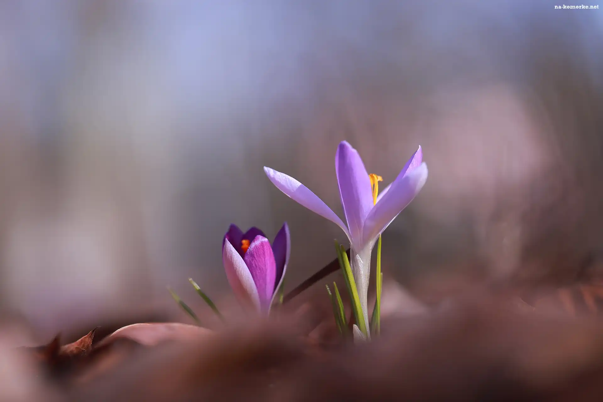Fioletowe, Kwiaty, Krokusy, Dwa na Komórkę