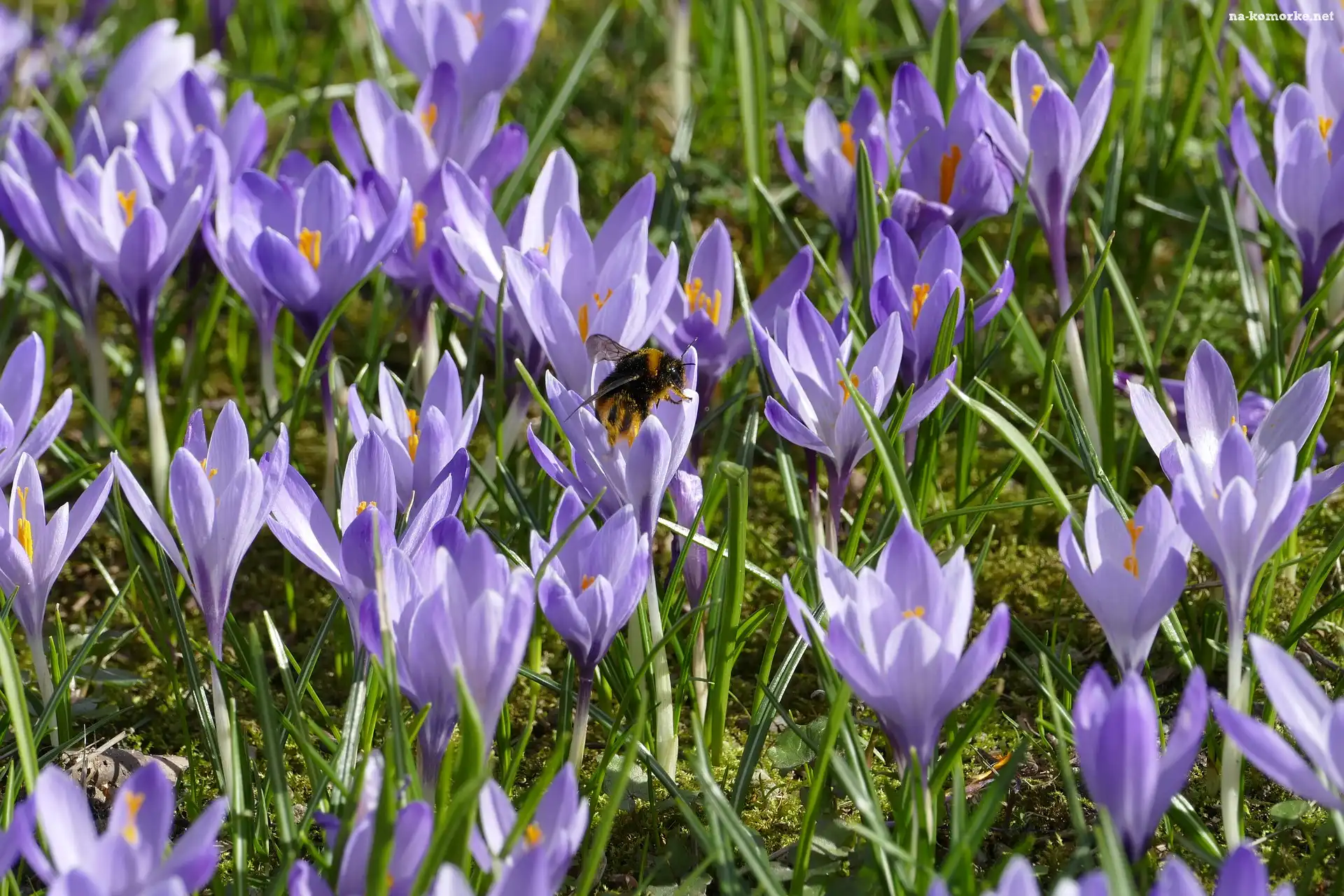 Fioletowe, Owad, Krokusy, Trzmiel na Komórkę