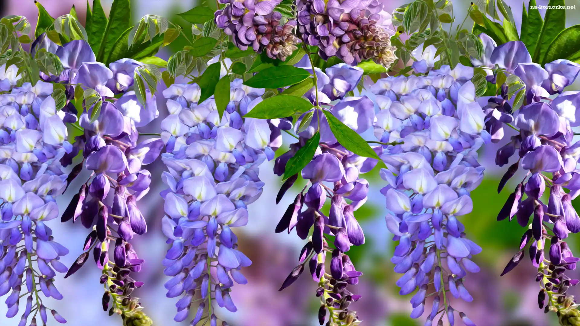 Fioletowe, Grafika, Kwiaty, Glicynia na Komórkę