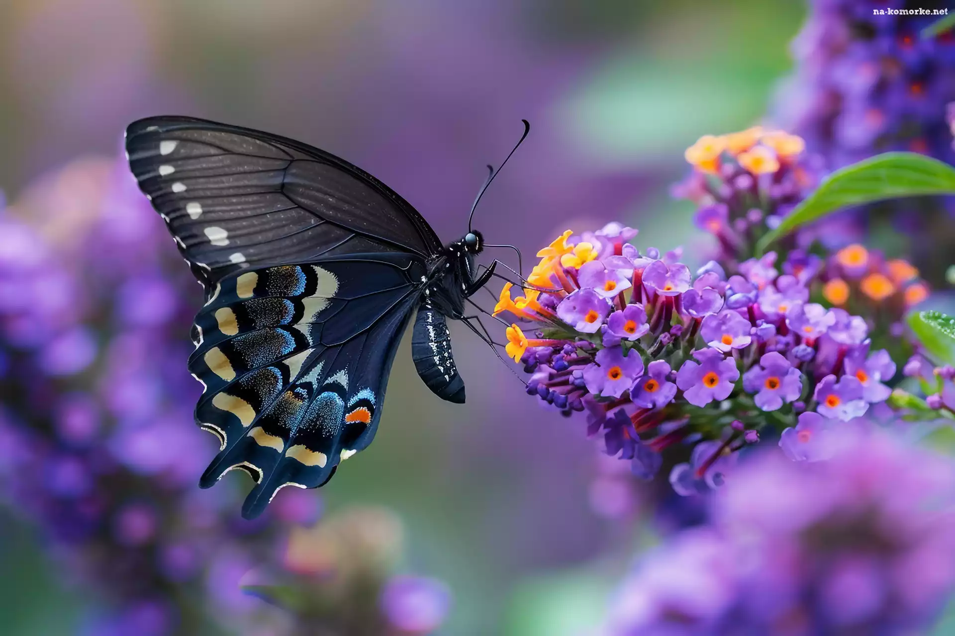 Kwiaty, Grafika, Motyl, Fioletowe na Komórkę