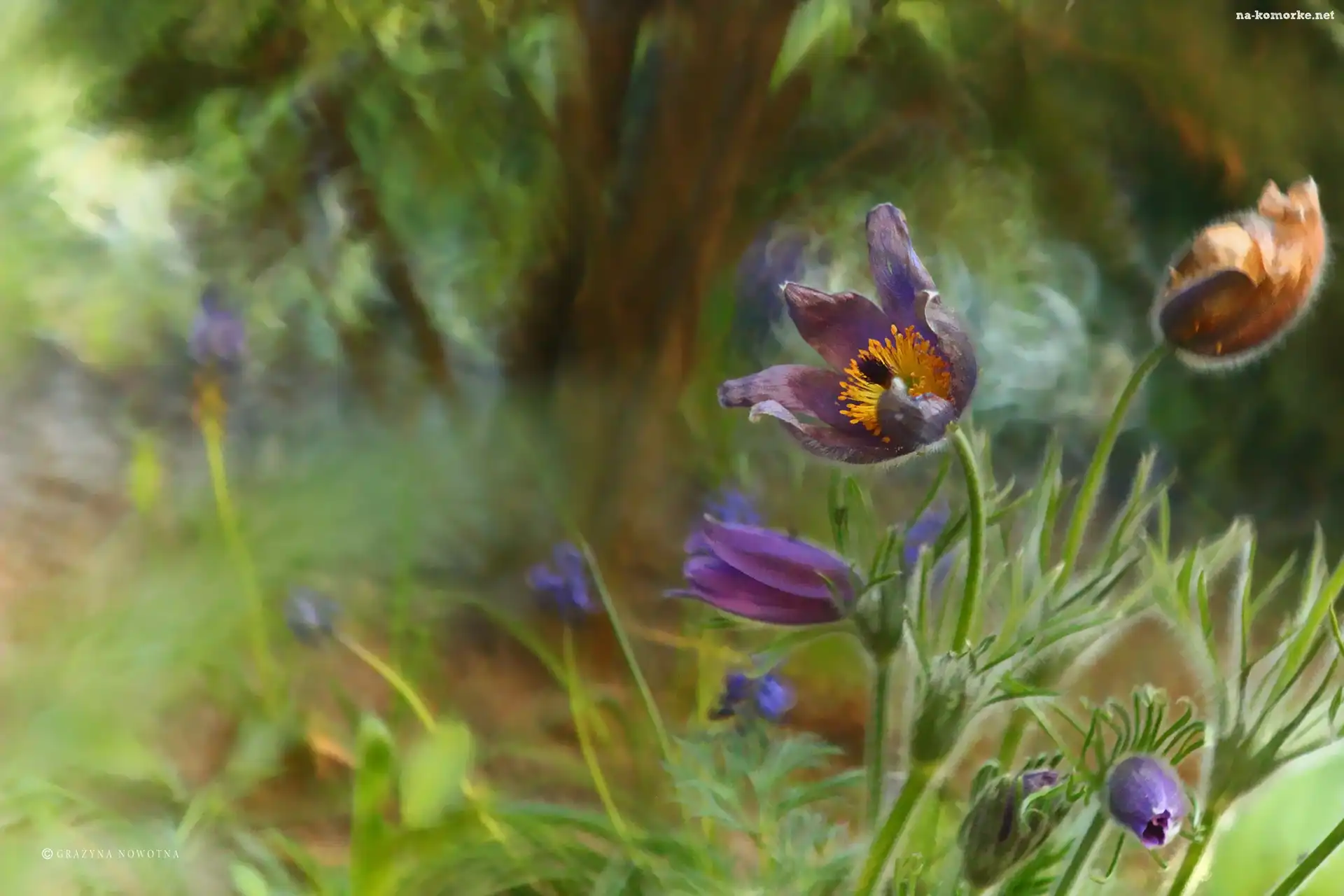 Sasanki, Fioletowe, Kwiaty na Komórkę