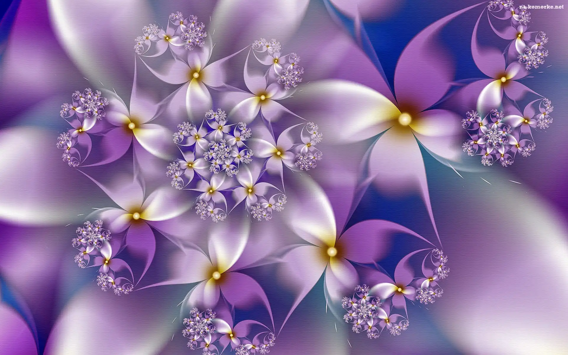 Fioletowo, Fraktal, Białe, Kwiaty na Komórkę