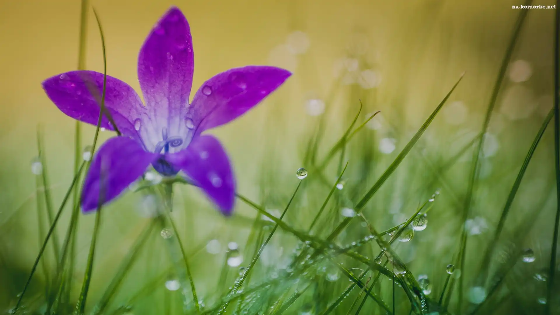 Fioletowy, Krople, Kwiat, Trawa na Komórkę