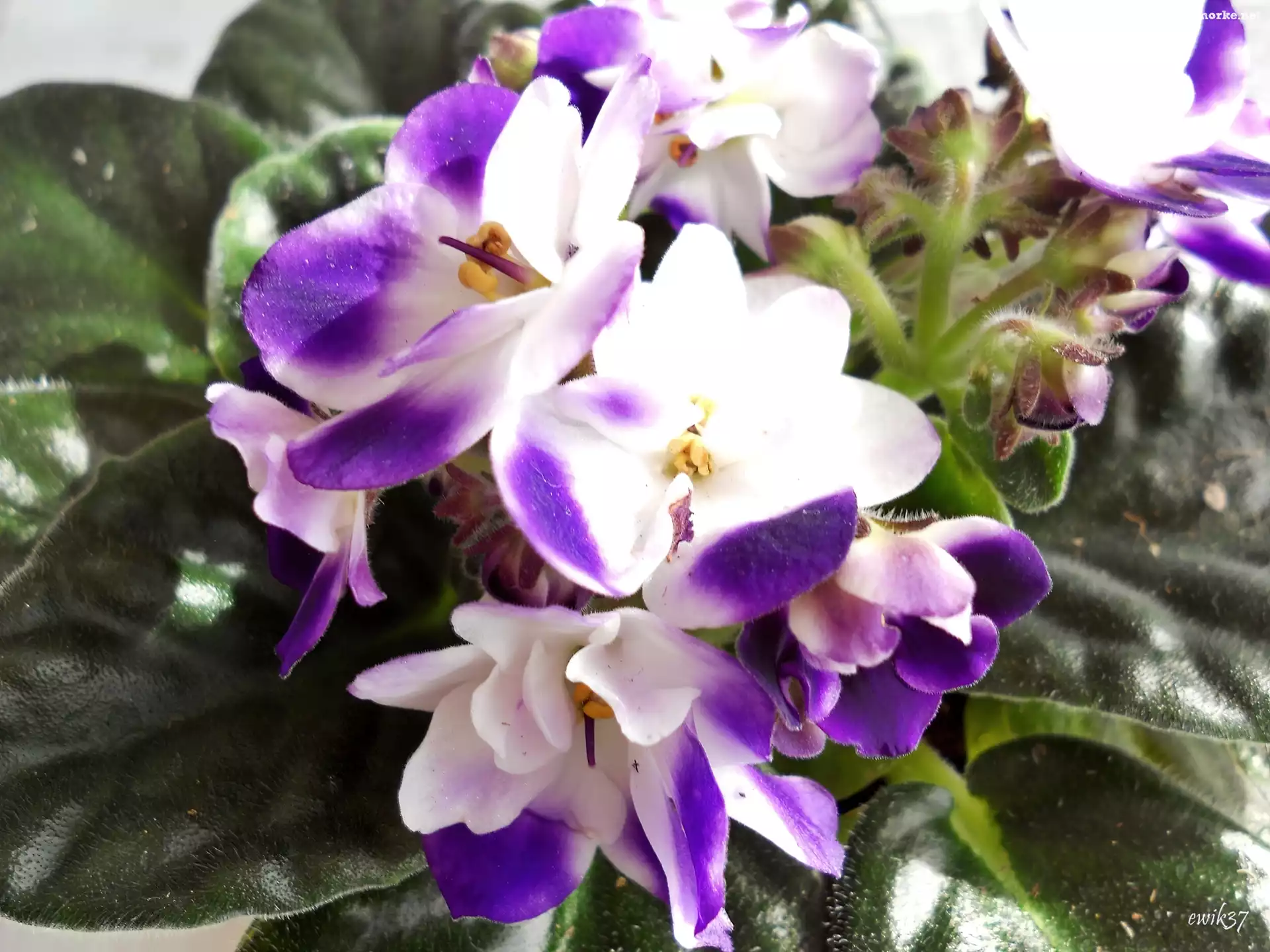 Fiołki, Fioletowe, Afrykańskie, Biało na Komórkę
