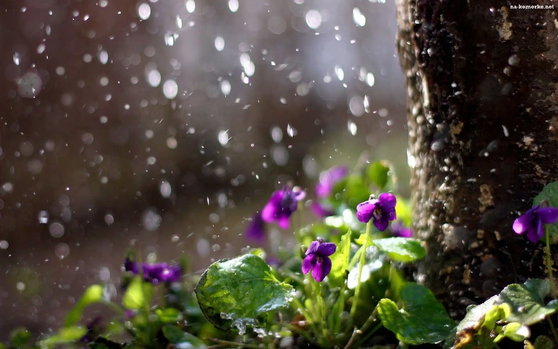 Fiołki, Deszcz, Pień, Drzewa na Komórkę