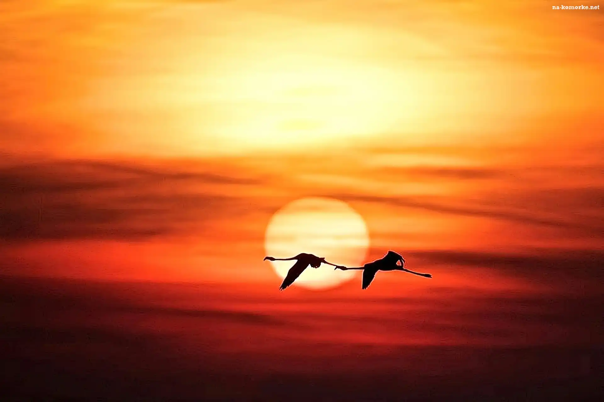 Flamingi, Słońca, Lot, Zachód na Komórkę