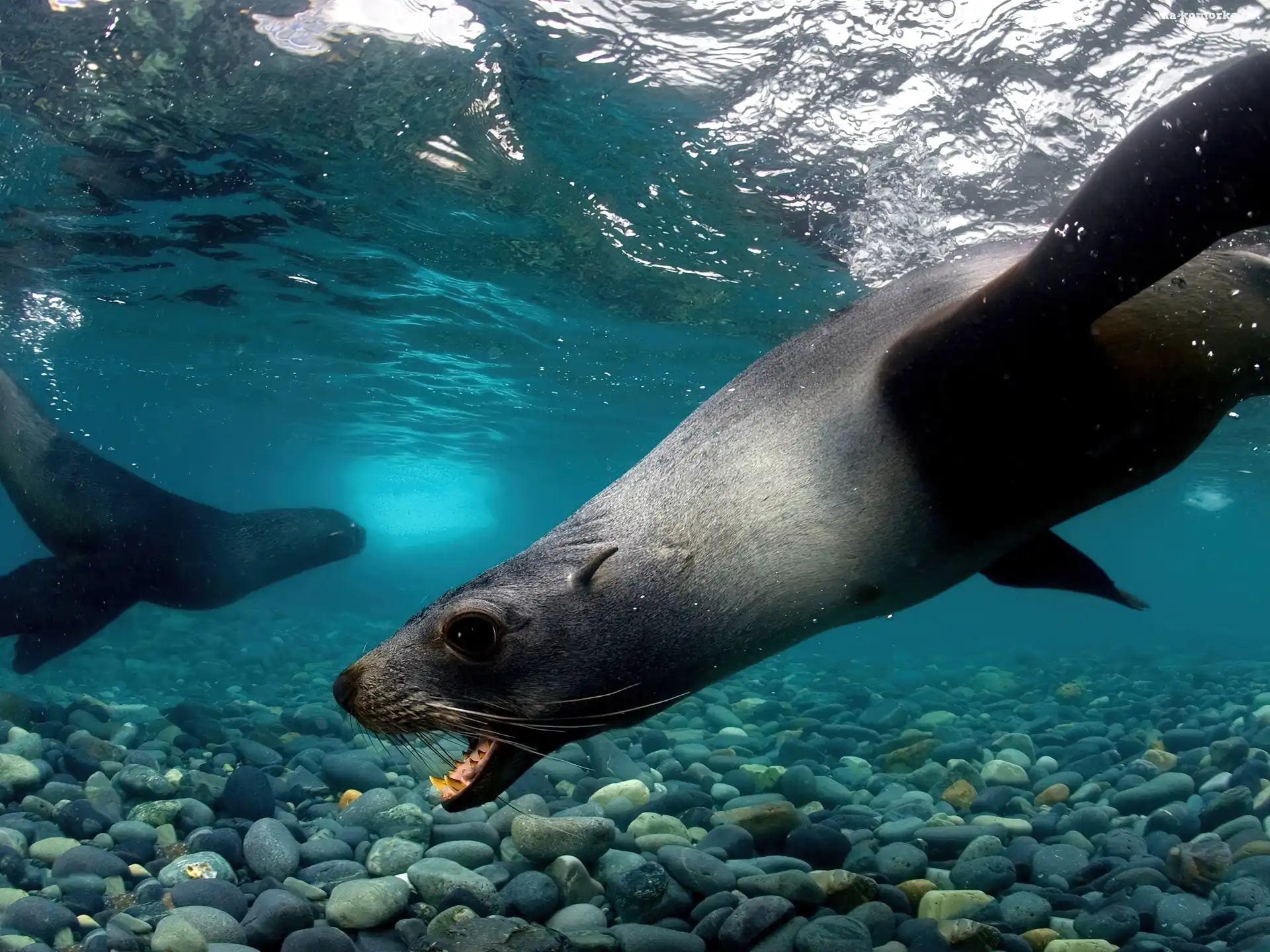 Foki, Kamienie, Pod, Wodą na Komórkę