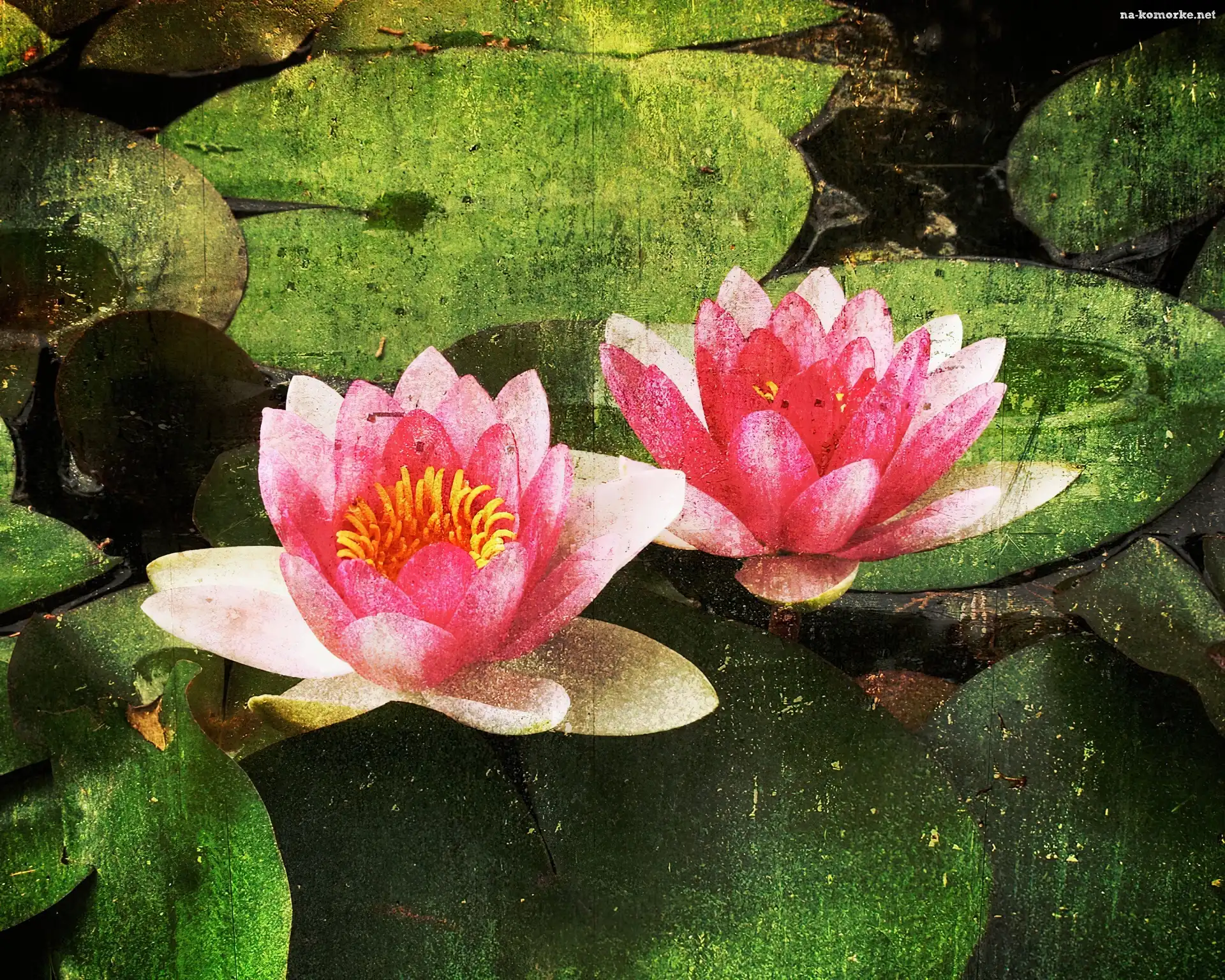 Fotografia, Różowe, Lilie, Wodne, Stara na Komórkę