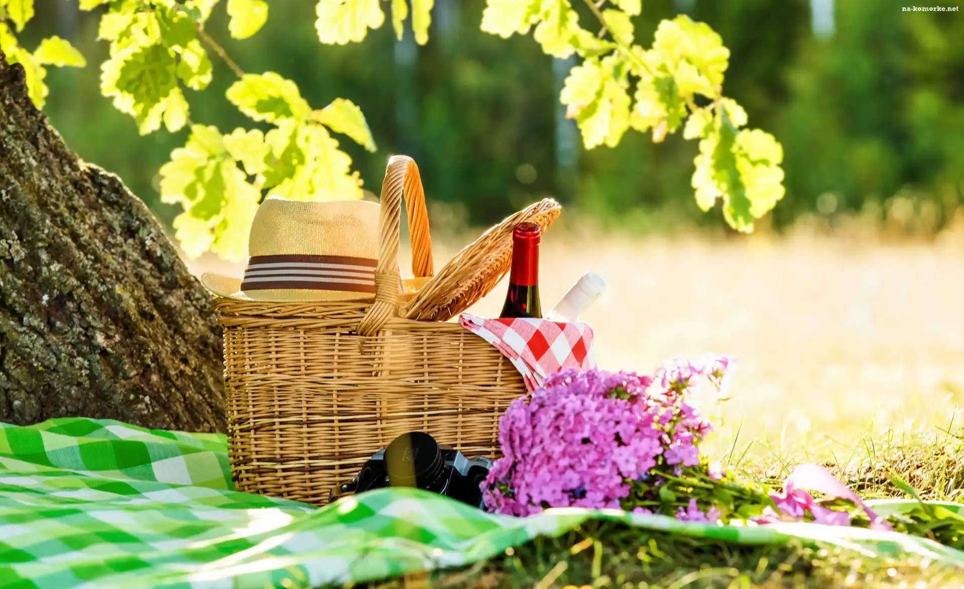 Wino, Letni, Aparat, Kosz, Rozmycie, Piknik, Kwiaty, Kapelusz, Fotograficzny na Komórkę