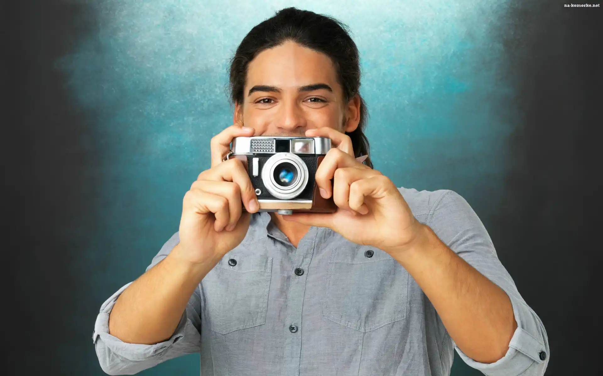 Fotograficzny, Mężczyzna, Model, Uśmiechnięty, Aparat na Komórkę