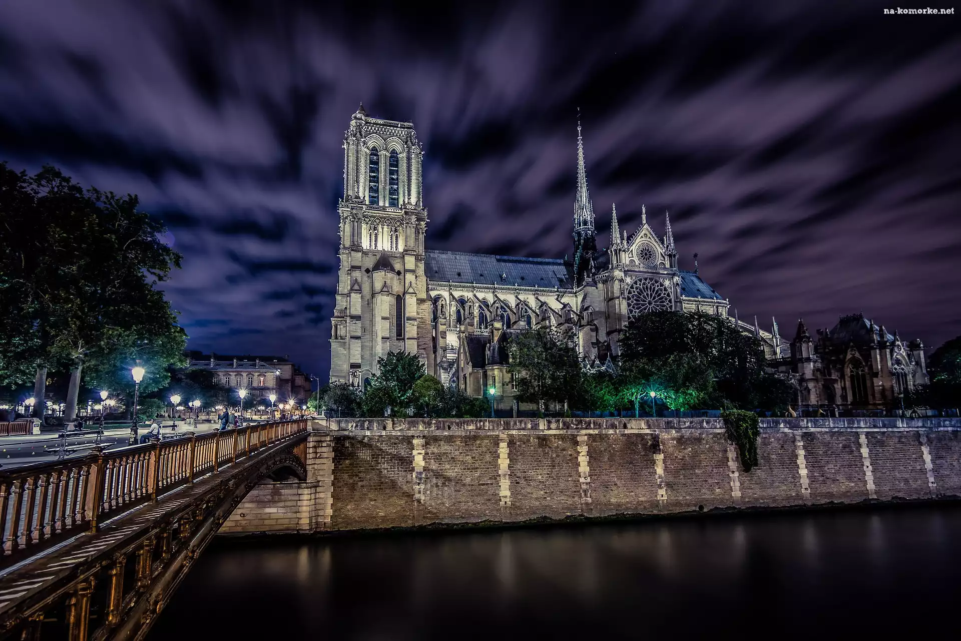 Francja, Noc, Katedra, Notre Dame, Paryż na Komórkę
