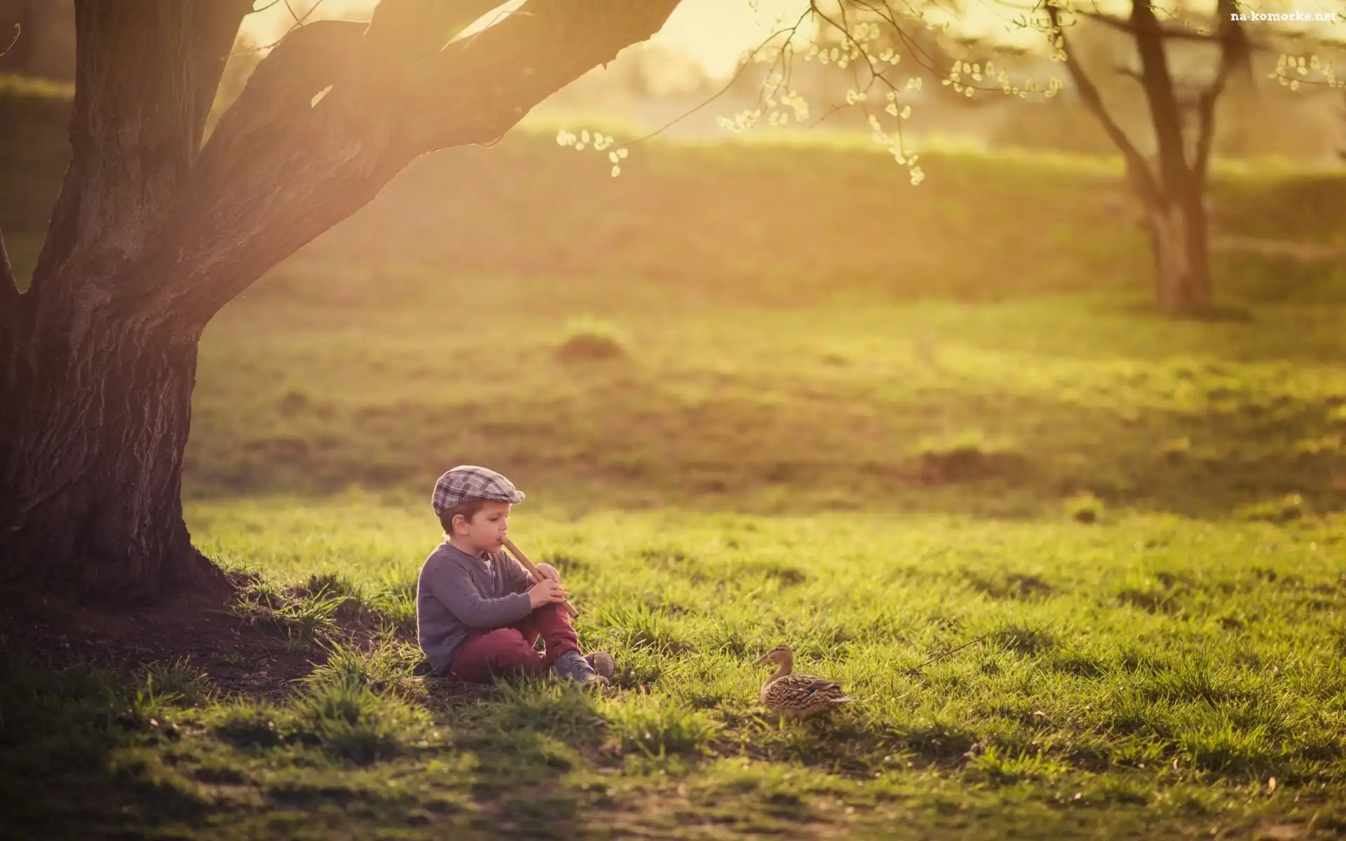 Fujarka, Chłopczyk, Mały, Drzewa, Kaczuszka, Łąka na Komórkę