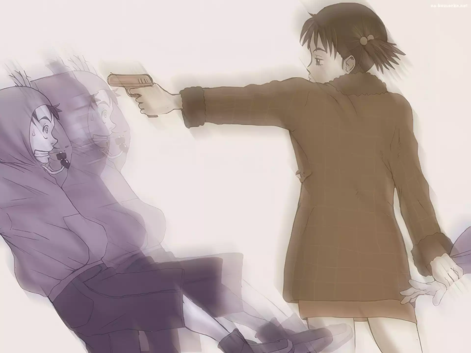 Fully Coolly, chłopak, dziewczyna, pistolet na Komórkę