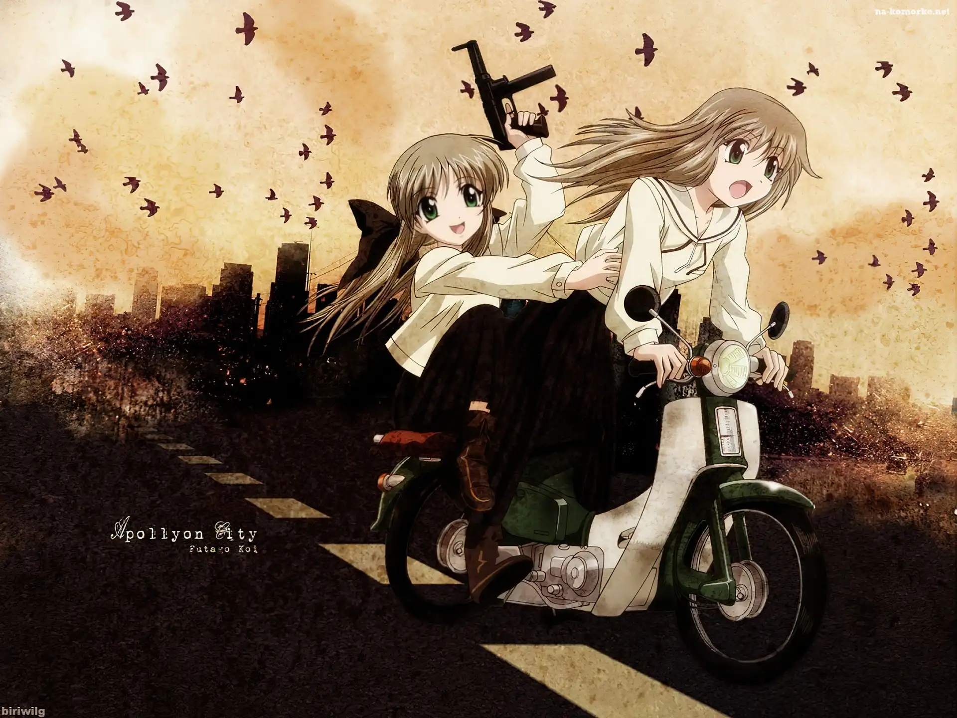 Futakoi Alternative, ptaki, motor, dziewczyny na Komórkę