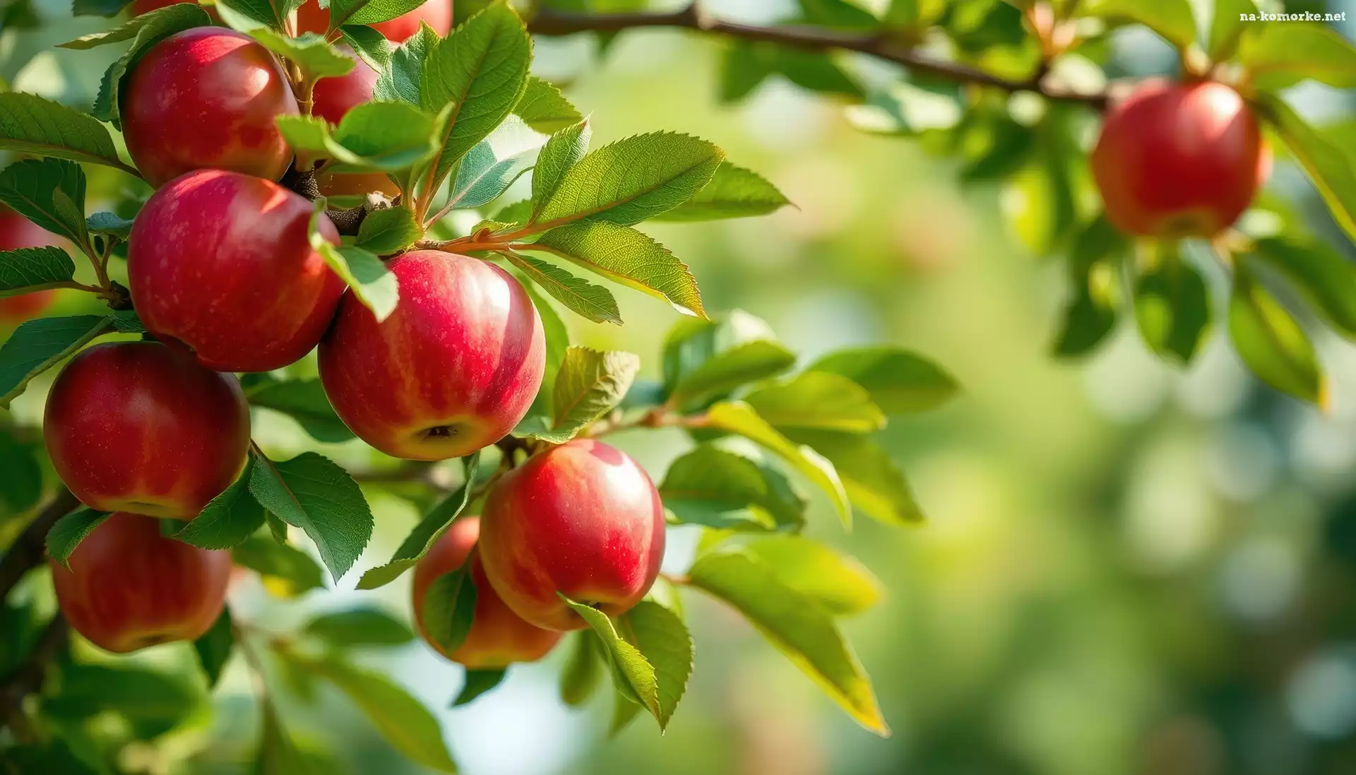 Czerwone, Gałąź, Liście, Jabłka, Grafika na Komórkę