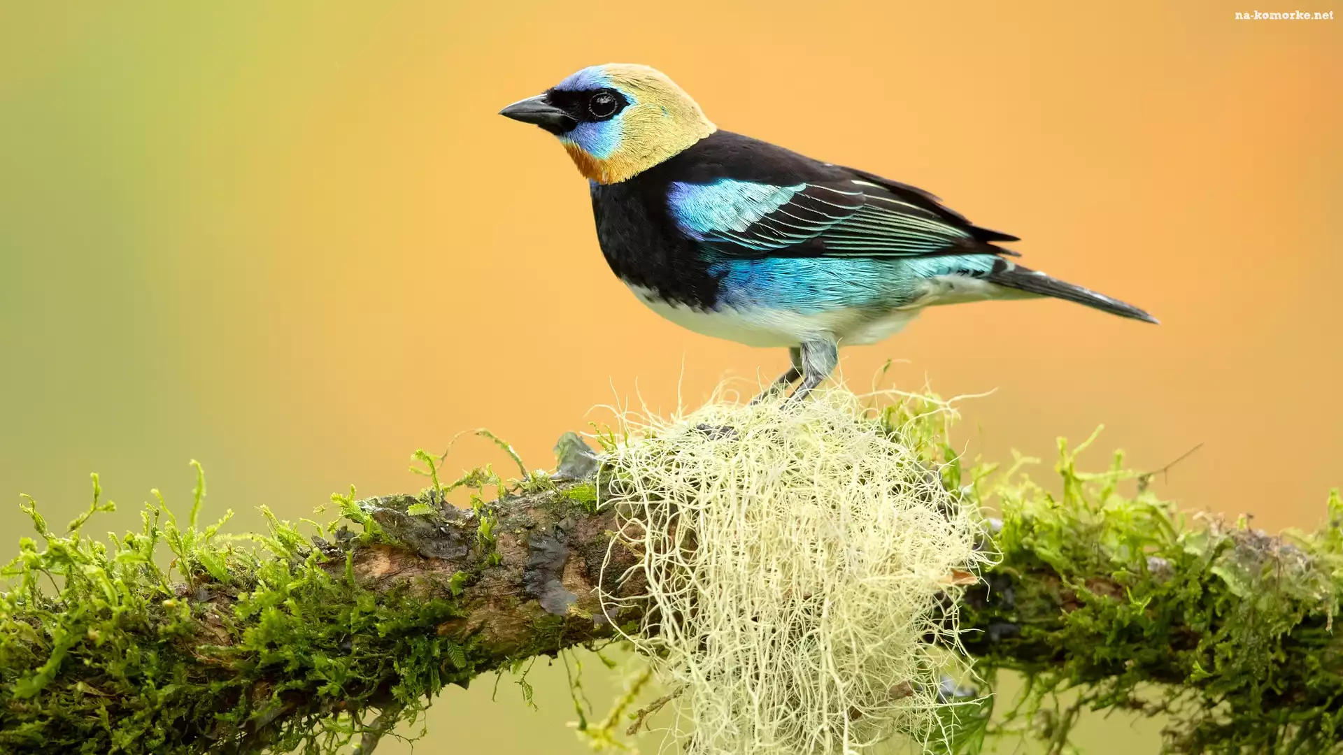 Ptak, Tangarka modrolica, Gałąź, Tanager, Mech na Komórkę