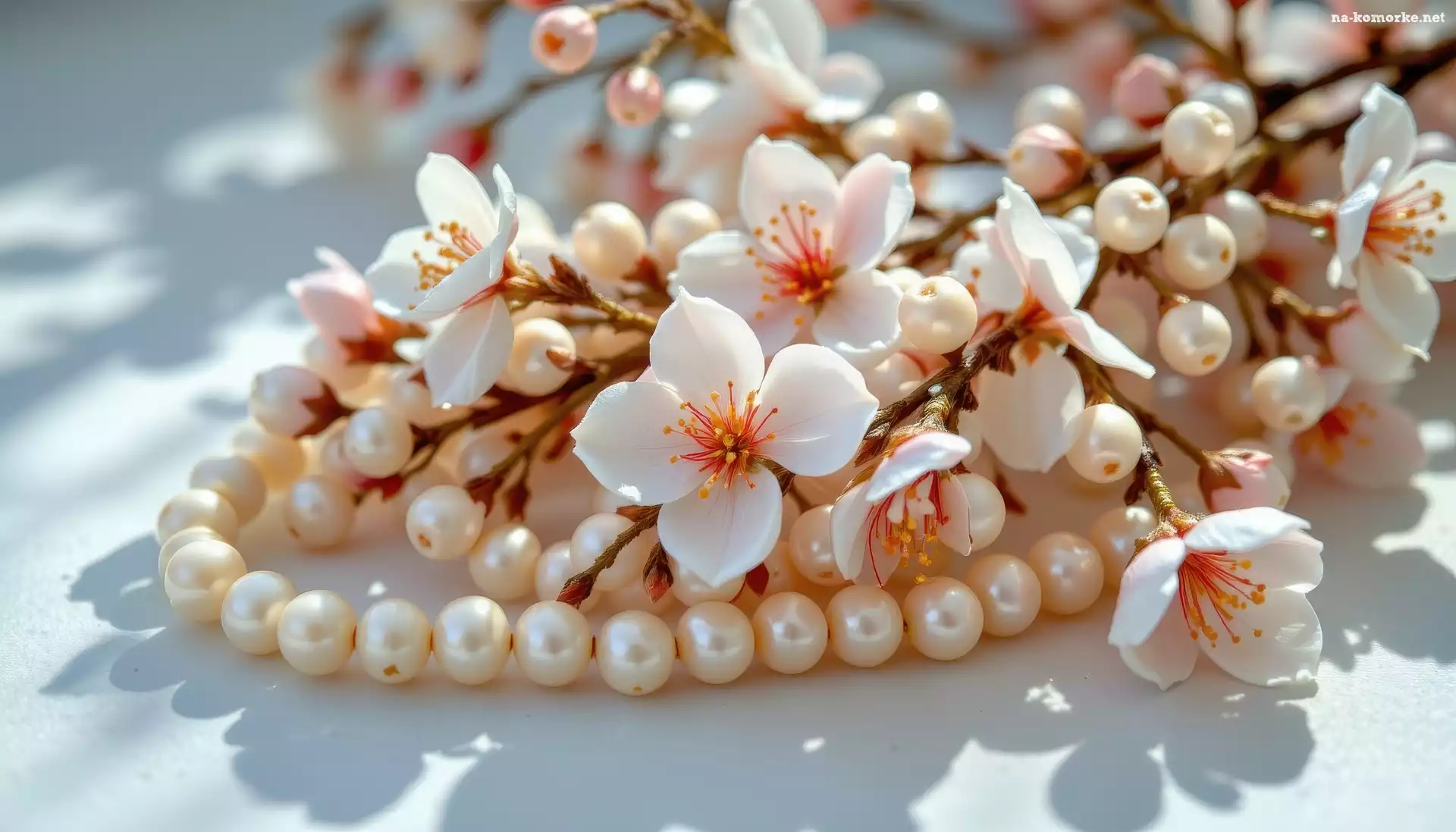 Białe, Gałązka, Korale, Kwiaty, Perły na Komórkę