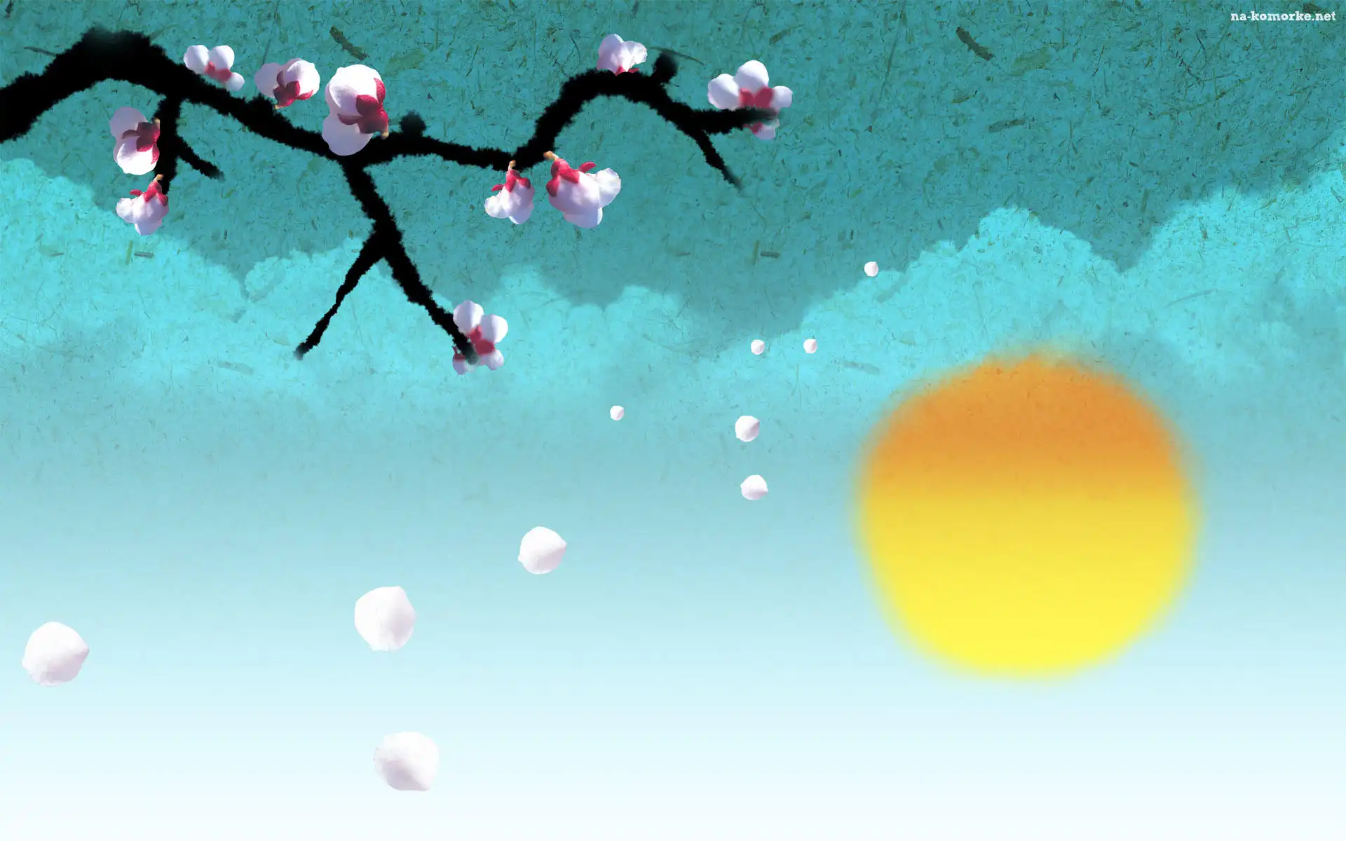 Gałązka, Chmury, Kwiaty, Słońce na Komórkę