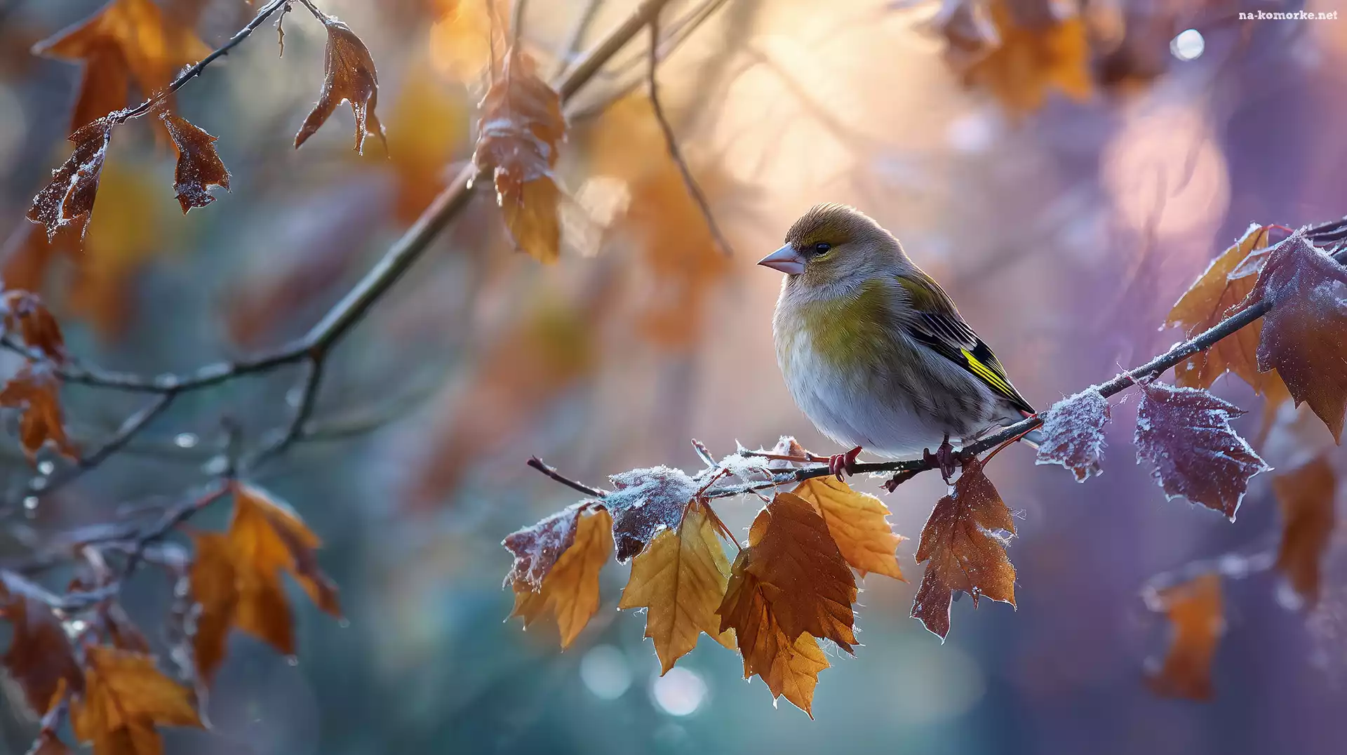 Ptak, Jesienne, Liście, Gałązki, Grafika AI na Komórkę