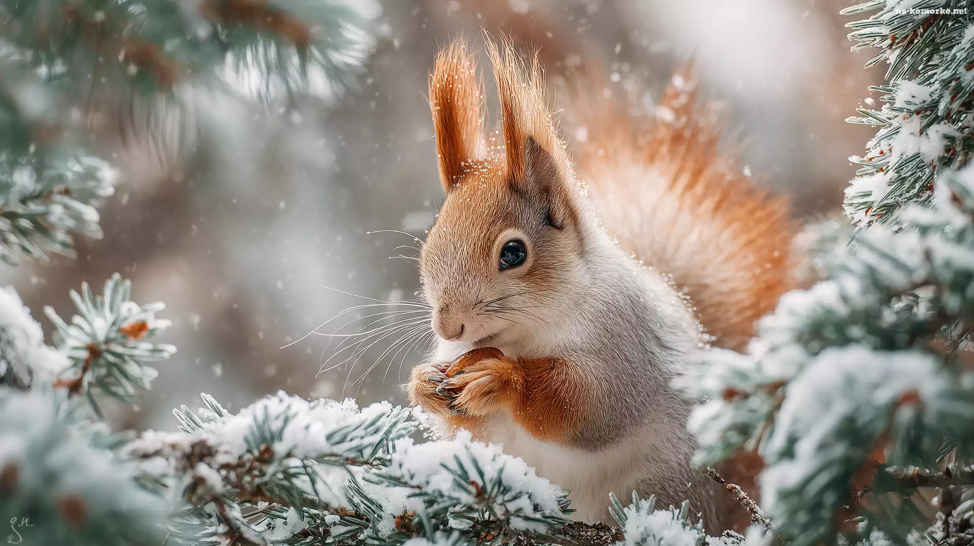 Wiewiórka, Śnieg, Zima, Gałązki, Grafika AI na Komórkę