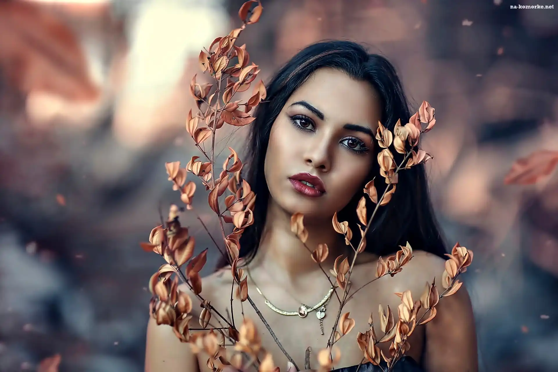Gałązki, Kobieta, Makijaż, Biżuteria, Suche na Komórkę