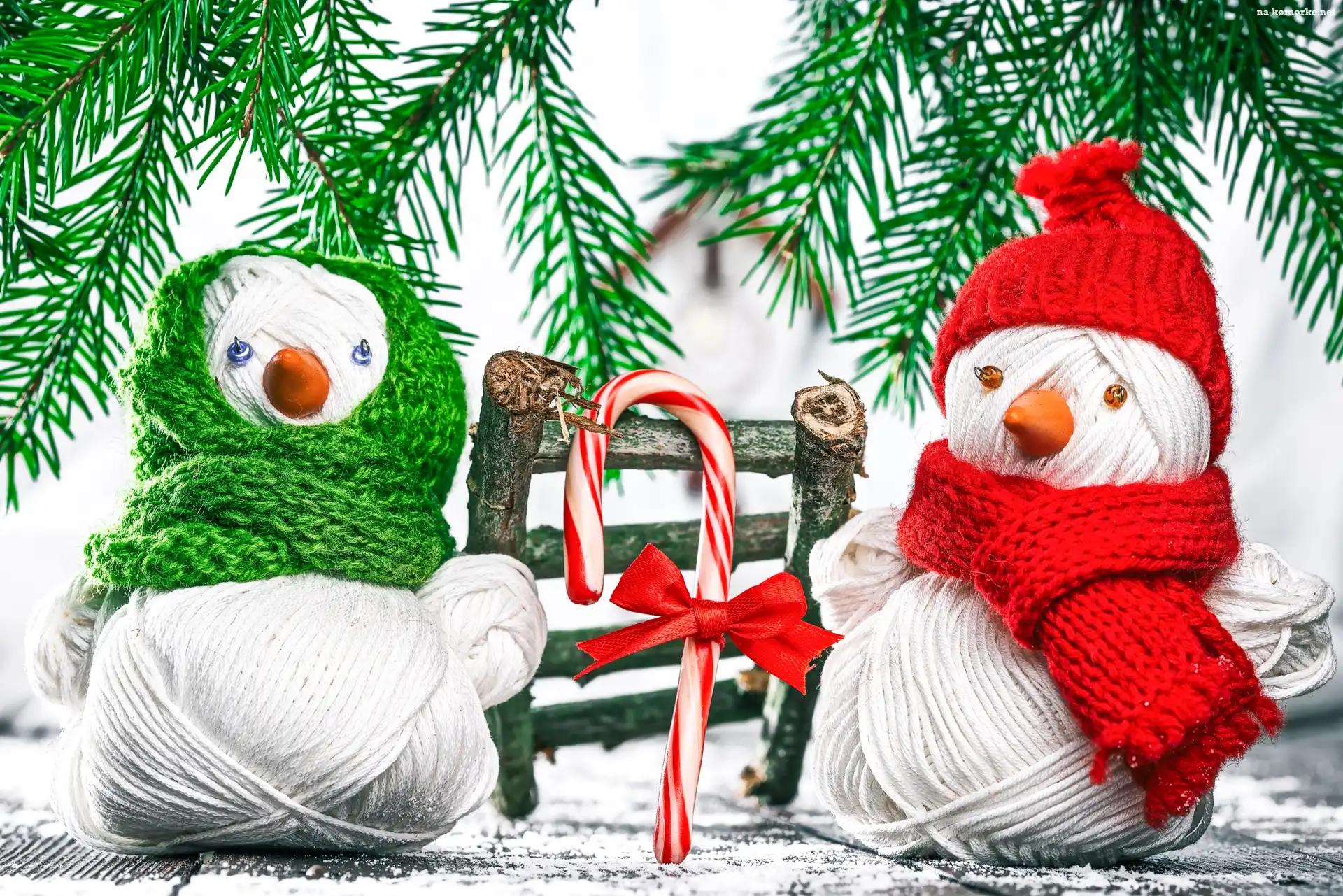 Gałązki, Bałwanki, Dwa, Dekoracja, Lizak, Świąteczna na Komórkę