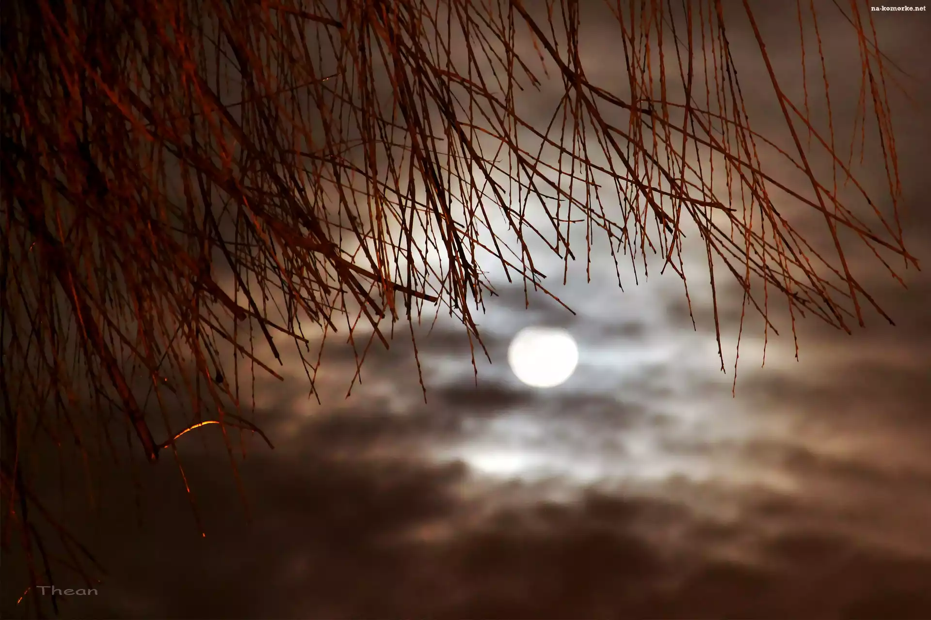 Gałązki, Księżyc, Nocne, Niebo na Komórkę