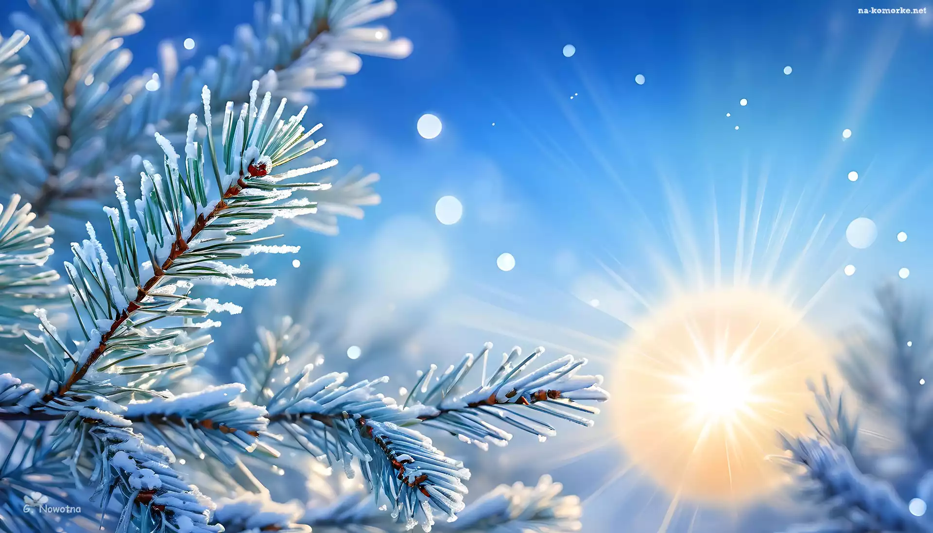 Świerk, Gałązki, Słońce, Ośnieżone, Grafika na Komórkę