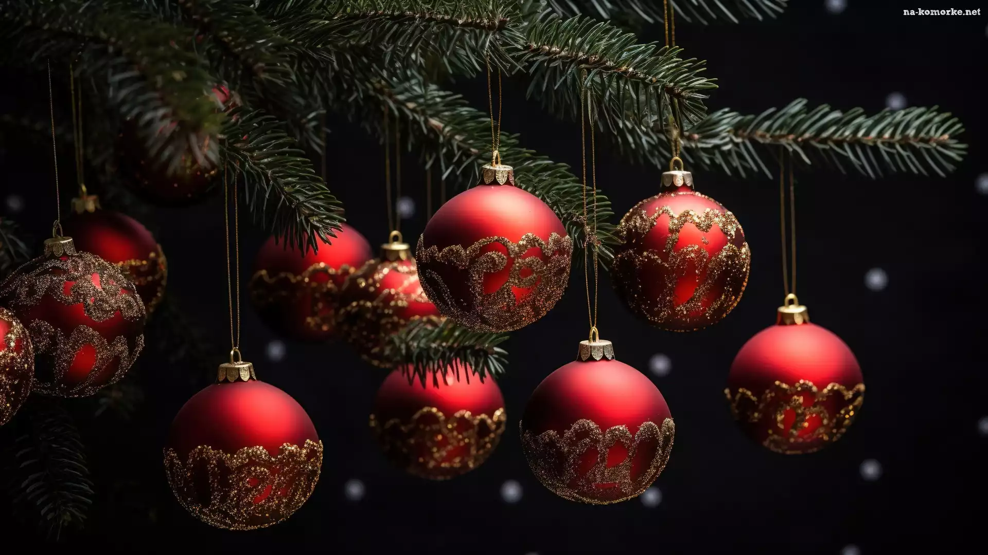 Gałązki, Czarne, Choinka, Czerwone, Boże Narodzenie, Tło, Świerkowe, Bombki na Komórkę