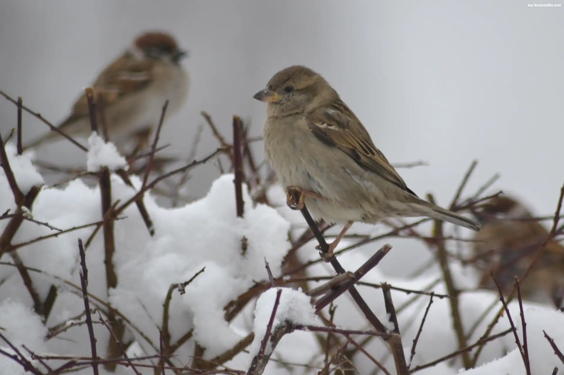 Wróble, Gałązki, Śnieg na Komórkę